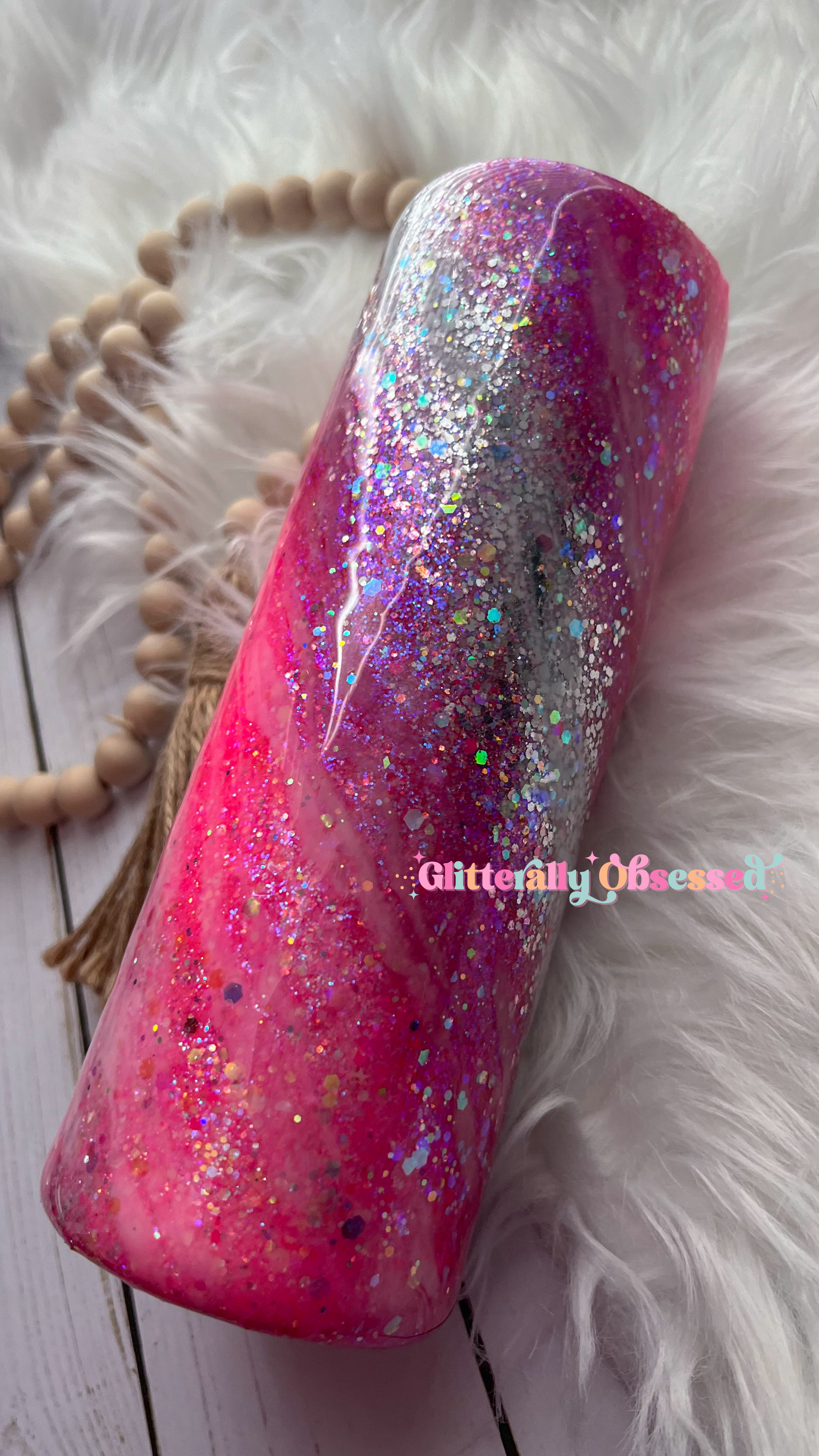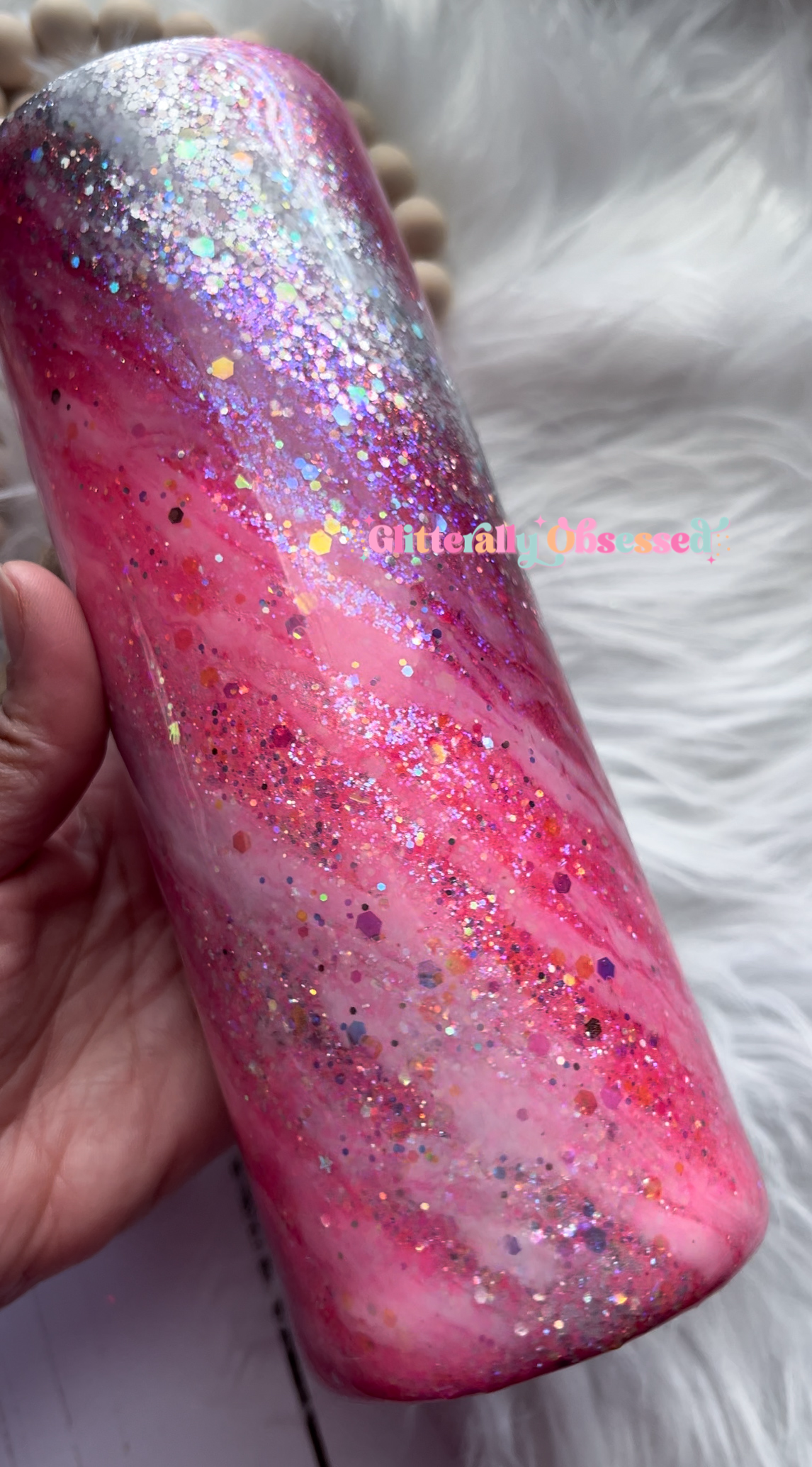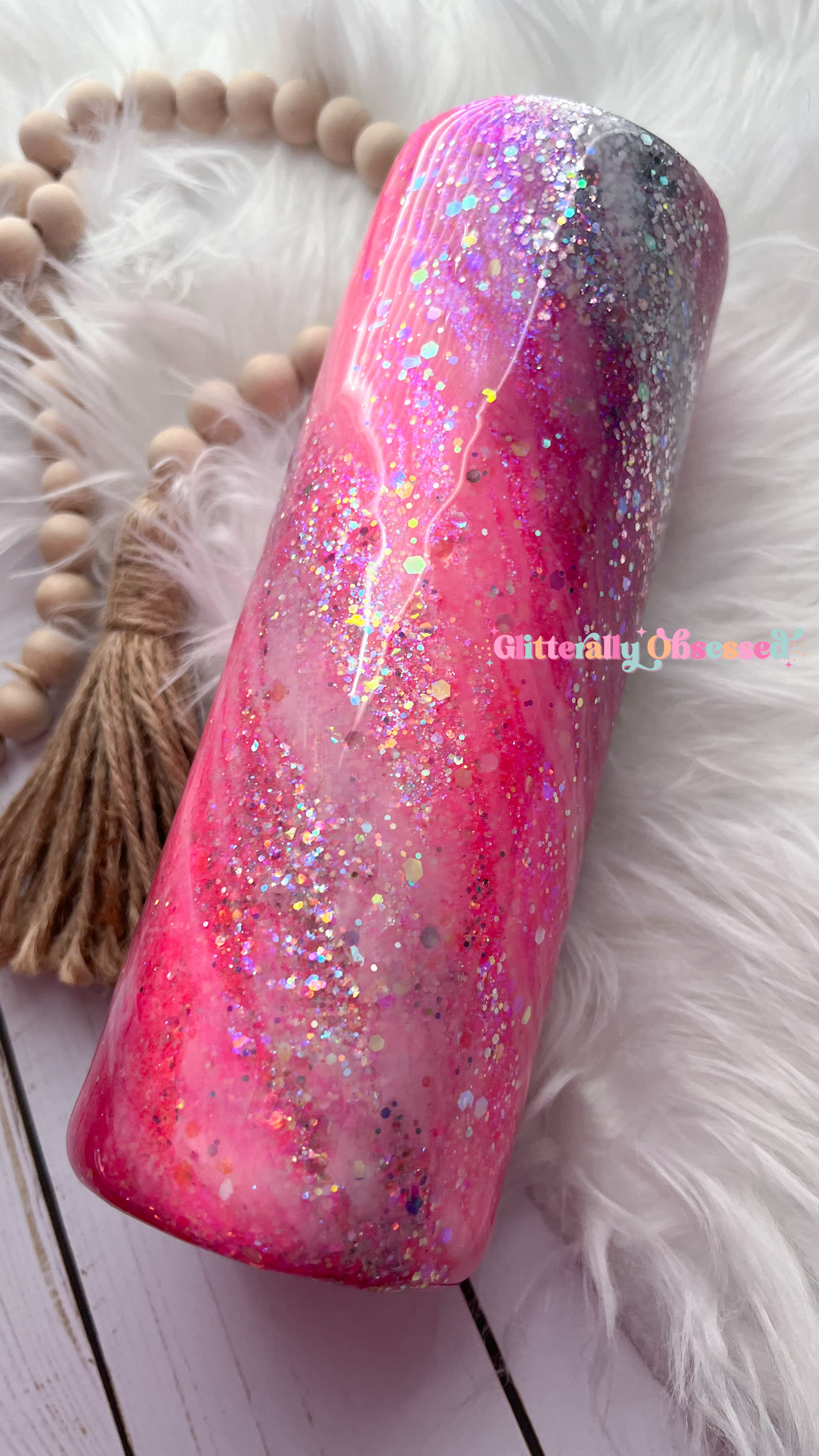 Every Glitterally Obsessed tumbler is handmade with real glitter to give you the most sparkle! All of our tumblers are doubled walled stainless steel tumblers, these tumblers keep your drinks cold / hot much longer and do not sweat. Once completed every tumbler is coated in layers of FDA compliant food safe epoxy. This gives each tumbler a high gloss glass like brilliant smooth finish. Once the epoxy is fully cured the glitter will not come off or flake. Each tumbler comes branded with Glitterally Obsessed on the bottom of the cup to ensure you have a one of a kind custom cup made directly by us. If you purchase a cup with decals they are placed underneath epoxy to ensure it stays. Milky way cups are unique and each one will look different. Please remember that these cups will look similar to the listing picture, but sometimes glitter placement and the swirls lines may flow in the opposite direction. Before send off each tumbler is thoroughly inspected one last time & will have pictures and videos taken prior to confirm perfect condition before your item arrives. Every tumbler purchase comes with a tumbler lid, reusable straw, tumbler care instructions, and a complimentary gift.