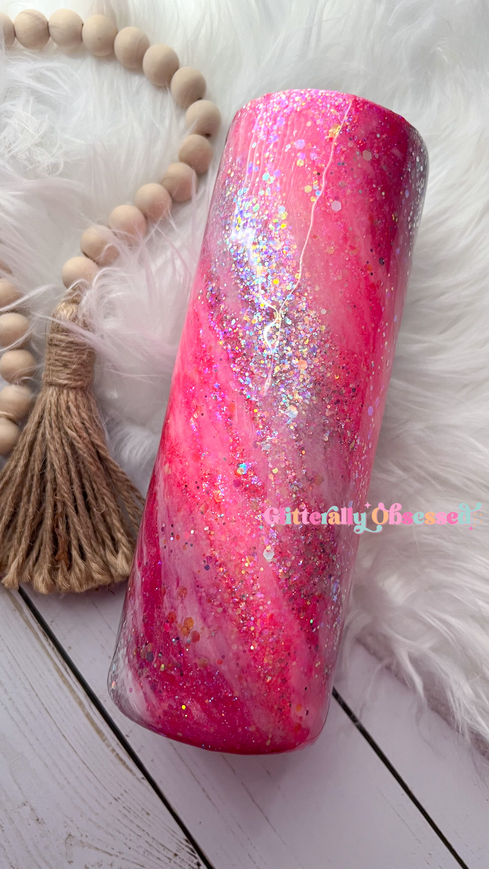 Please remember all tumblers are glittered by hand. Every cup will be unique in its own way and slightly different from the other. No two cups will ever be the same. As with all handmade items, there may be slight imperfections, but this in no way affects the use or quality of the tumbler. We offer multiple cup sizes so each design will look slightly different on each tumbler.