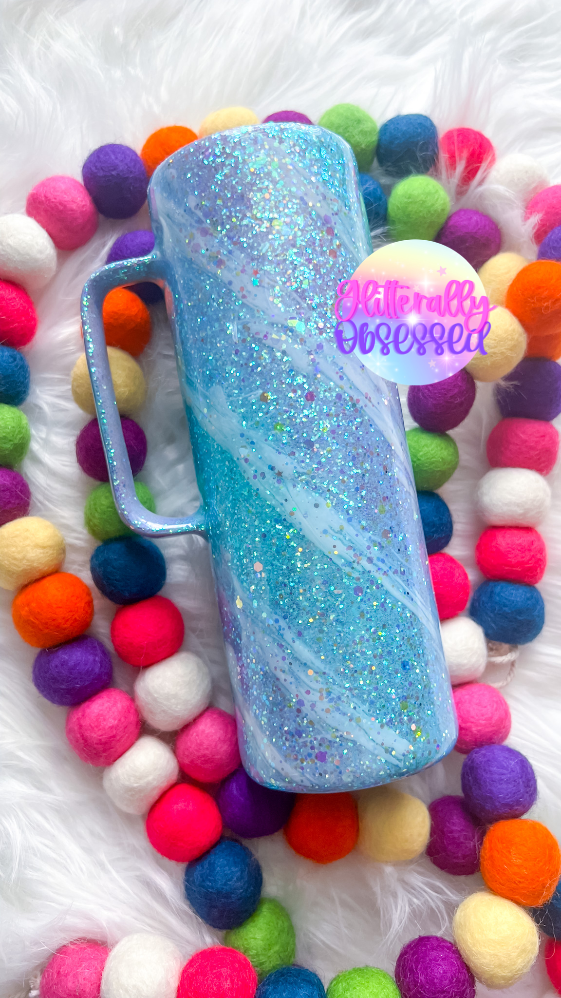 Please remember all tumblers are glittered by hand. Every cup will be unique in its own way and slightly different from the other. No two cups will ever be the same. As with all handmade items, there may be slight imperfections, but this in no way affects the use or quality of the tumbler. We offer multiple cup sizes so each design will look slightly different on each tumbler.