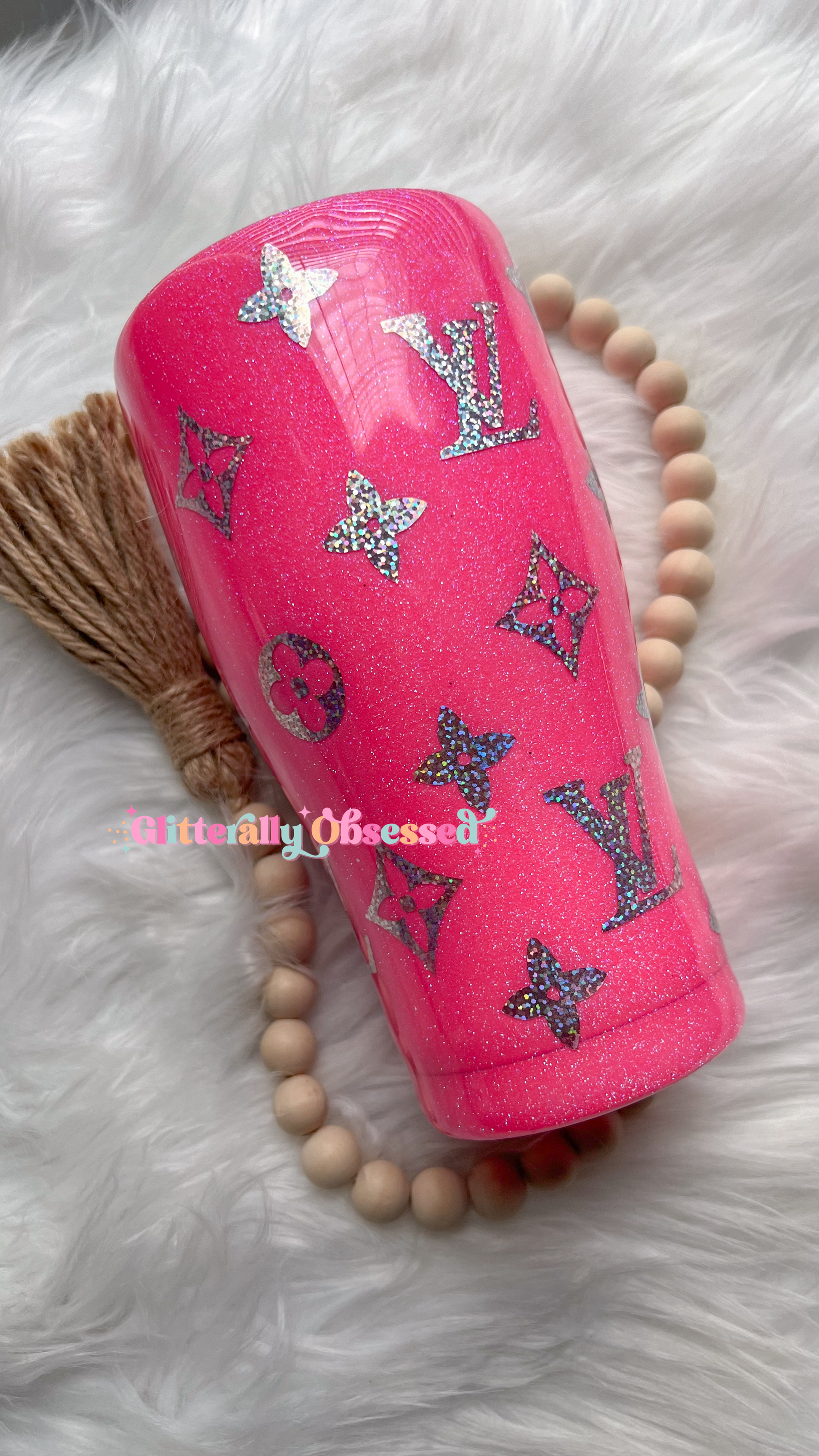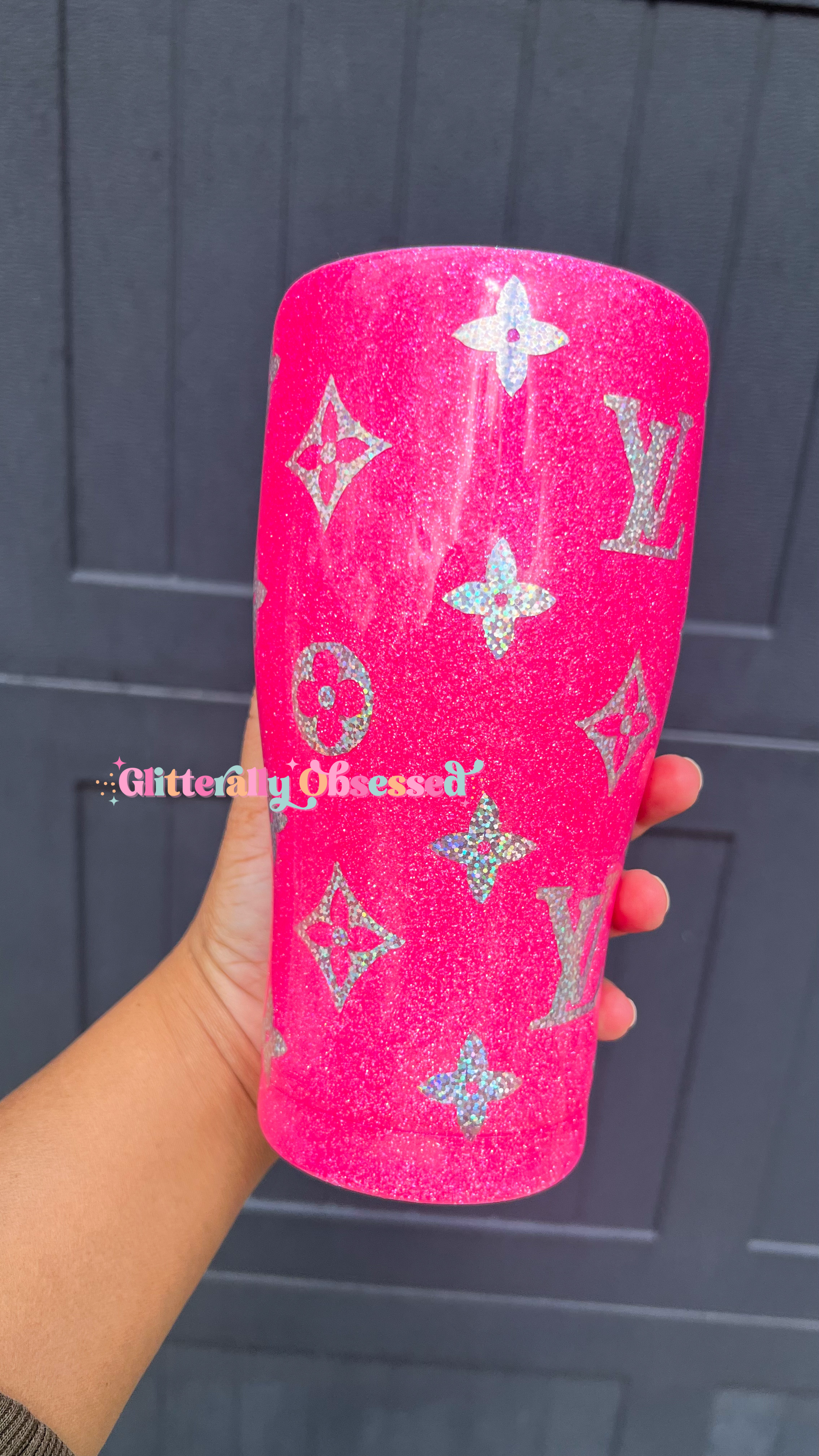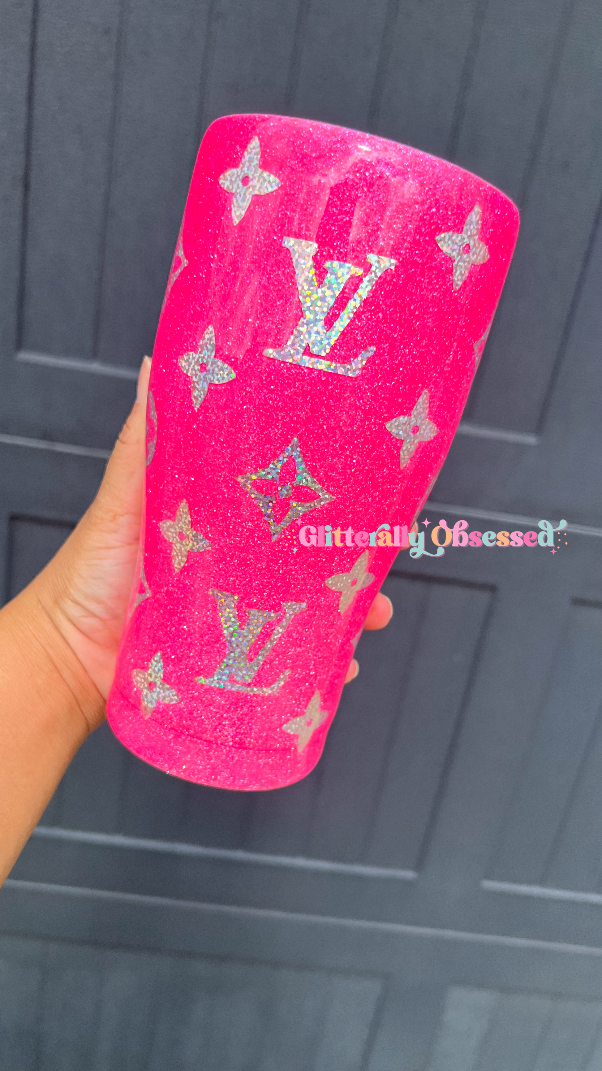 Please remember all tumblers are glittered by hand. Every cup will be unique in its own way and slightly different from the other. No two cups will ever be the same. As with all handmade items, there may be slight imperfections, but this in no way affects the use or quality of the tumbler. We offer multiple cup sizes so each design will look slightly different on each tumbler.