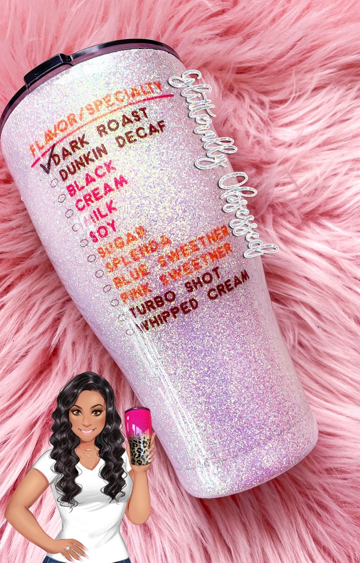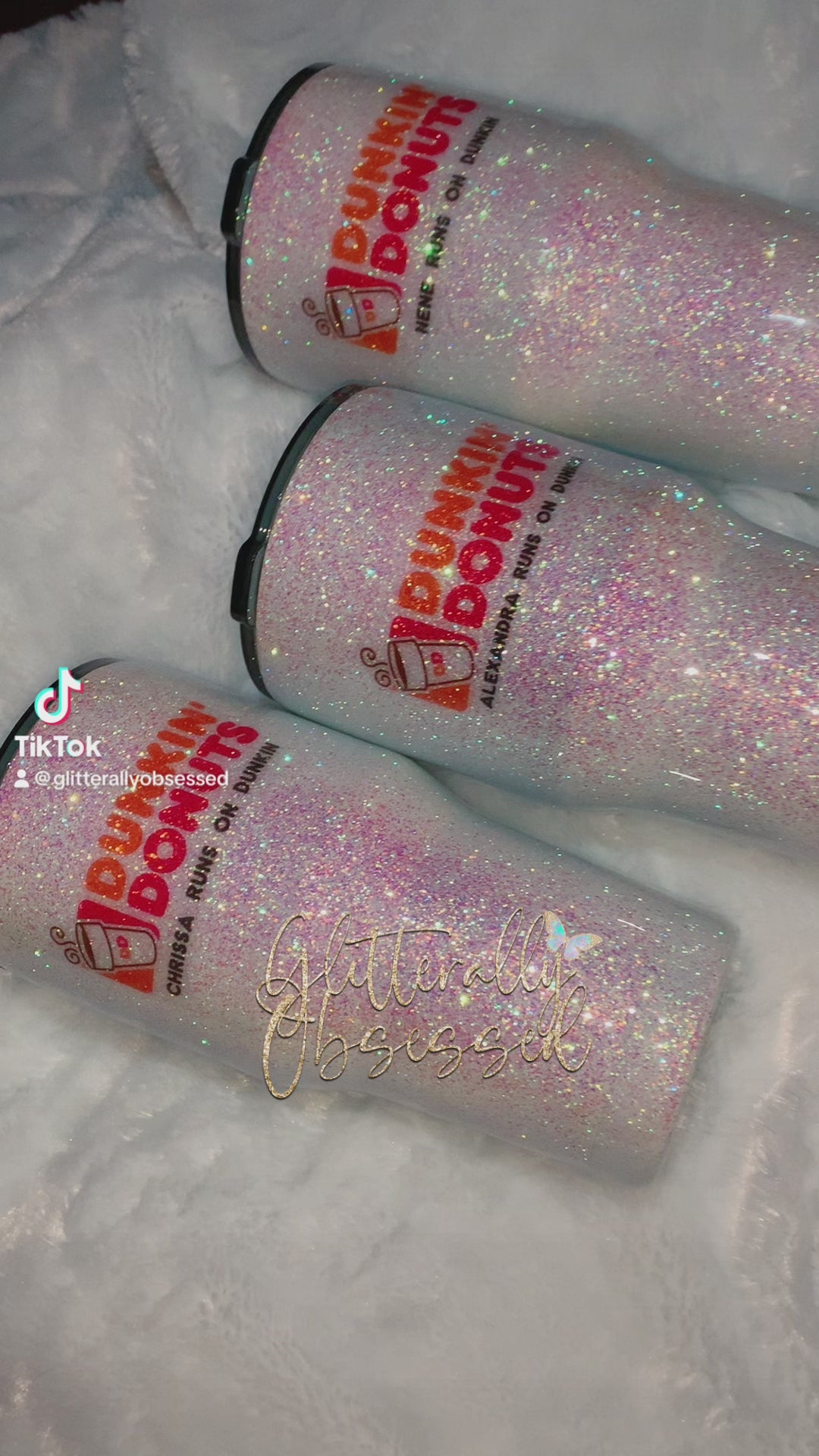 Every Glitterally Obsessed tumbler is handmade with real glitter to give you the most sparkle! All of our tumblers are doubled walled stainless steel tumblers, these tumblers keep your drinks cold / hot much longer and do not sweat. Once completed every tumbler is coated in layers of FDA compliant food safe epoxy. This gives each tumbler a high gloss glass like brilliant smooth finish. Once the epoxy is fully cured the glitter will not come off or flake. Each tumbler comes branded with Glitterally Obsessed on the bottom of the cup to ensure you have a one of a kind custom cup made directly by us. If you purchase a cup with decals they are placed underneath epoxy to ensure it stays. Before send off each tumbler is thoroughly inspected one last time & will have pictures and videos taken prior to confirm perfect condition before your item arrives. Every tumbler purchase comes with a tumbler lid, reusable straw, tumbler care instructions, and a complimentary gift.