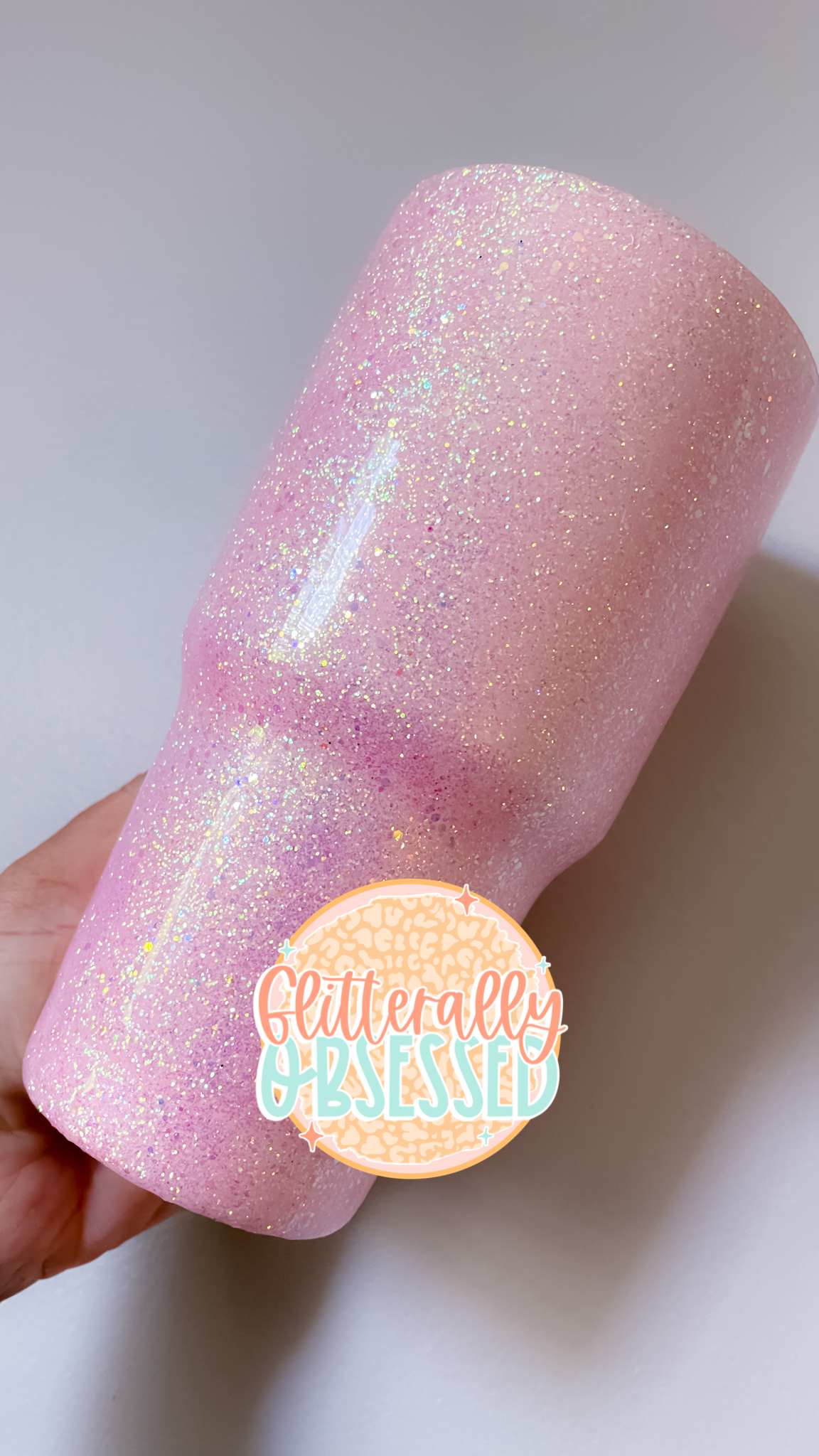 Please remember all tumblers are glittered by hand. Every cup will be unique in its own way and slightly different from the other. No two cups will ever be the same. As with all handmade items, there may be slight imperfections, but this in no way affects the use or quality of the tumbler. We offer multiple cup sizes so each design will look slightly different on each tumbler.