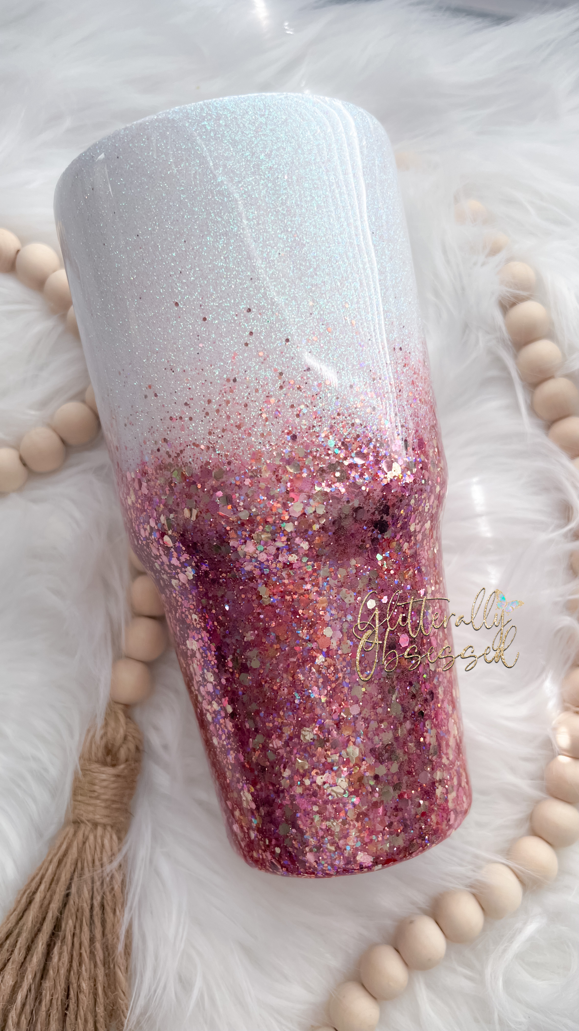 Please remember all tumblers are glittered by hand. Every cup will be unique in its own way and slightly different from the other. No two cups will ever be the same. As with all handmade items, there may be slight imperfections, but this in no way affects the use or quality of the tumbler. We offer multiple cup sizes so each design will look slightly different on each tumbler.