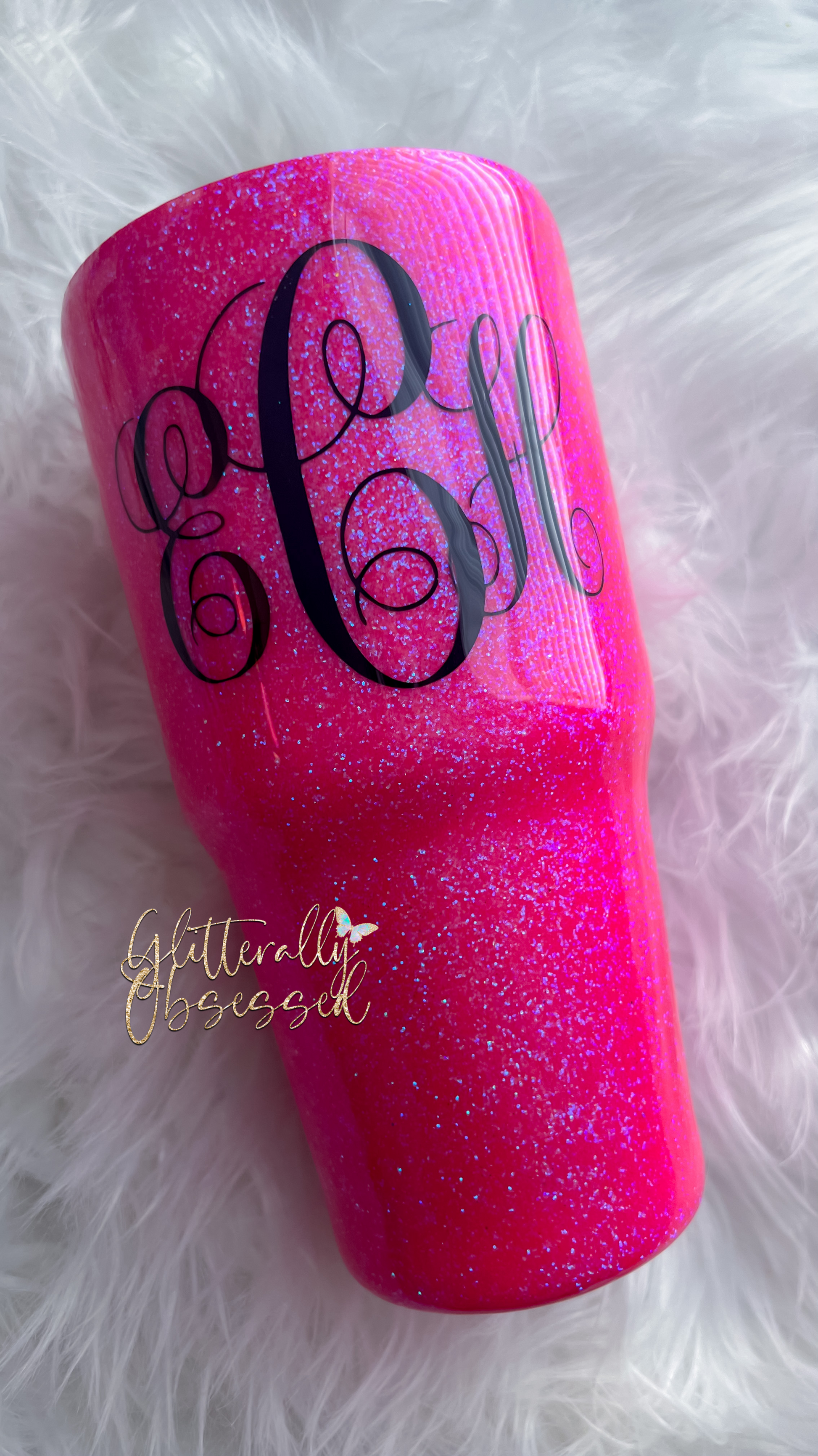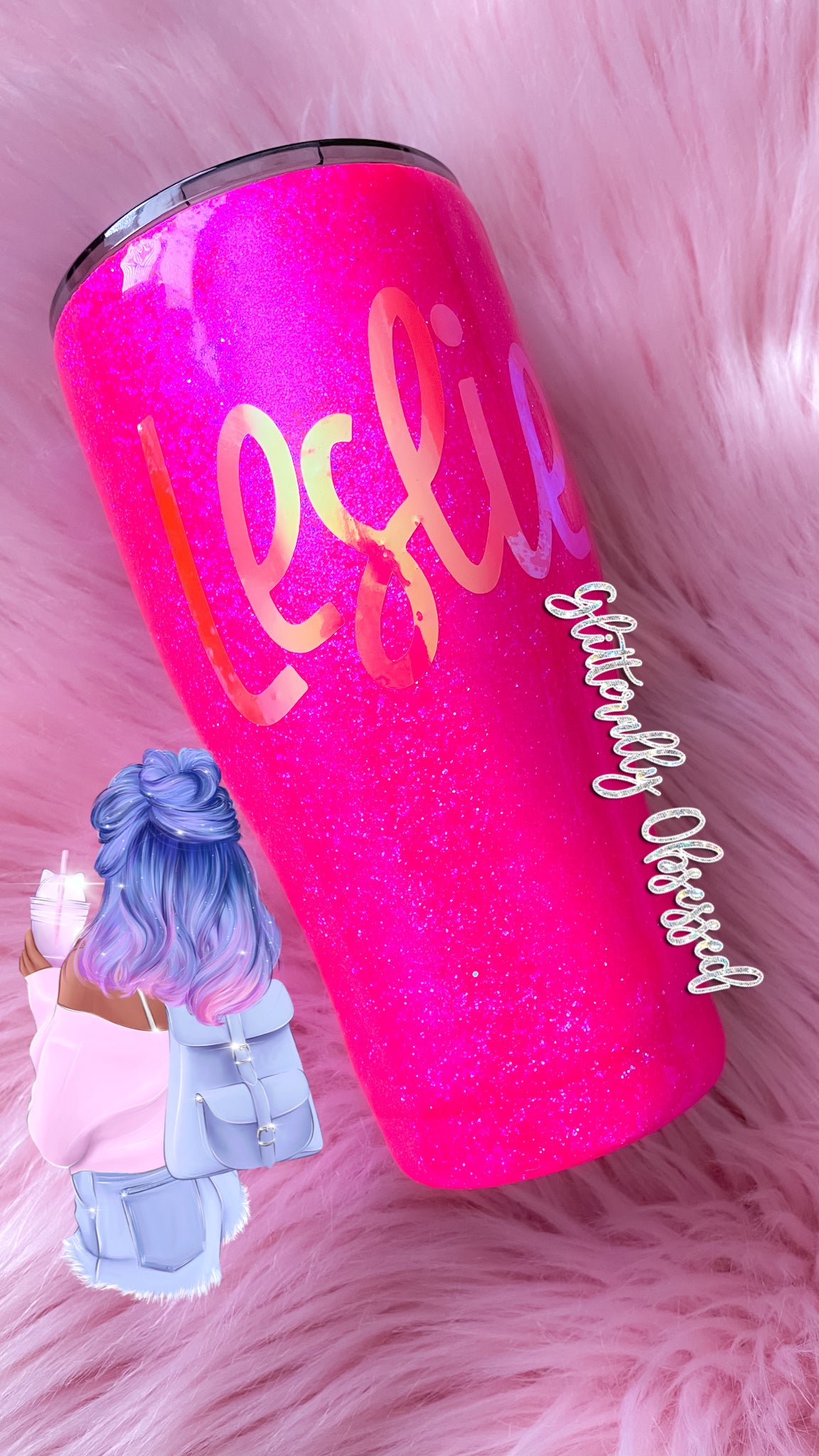 Every Glitterally Obsessed tumbler is handmade with real glitter to give you the most sparkle! All of our tumblers are doubled walled stainless steel tumblers, these tumblers keep your drinks cold / hot much longer and do not sweat. Once completed every tumbler is coated in layers of FDA compliant food safe epoxy. This gives each tumbler a high gloss glass like brilliant smooth finish. Once the epoxy is fully cured the glitter will not come off or flake. Each tumbler comes branded with Glitterally Obsessed on the bottom of the cup to ensure you have a one of a kind custom cup made directly by us. If you purchase a cup with decals they are placed underneath epoxy to ensure it stays. Before send off each tumbler is thoroughly inspected one last time & will have pictures and videos taken prior to confirm perfect condition before your item arrives. Every tumbler purchase comes with a tumbler lid, reusable straw, tumbler care instructions, and a complimentary gift.