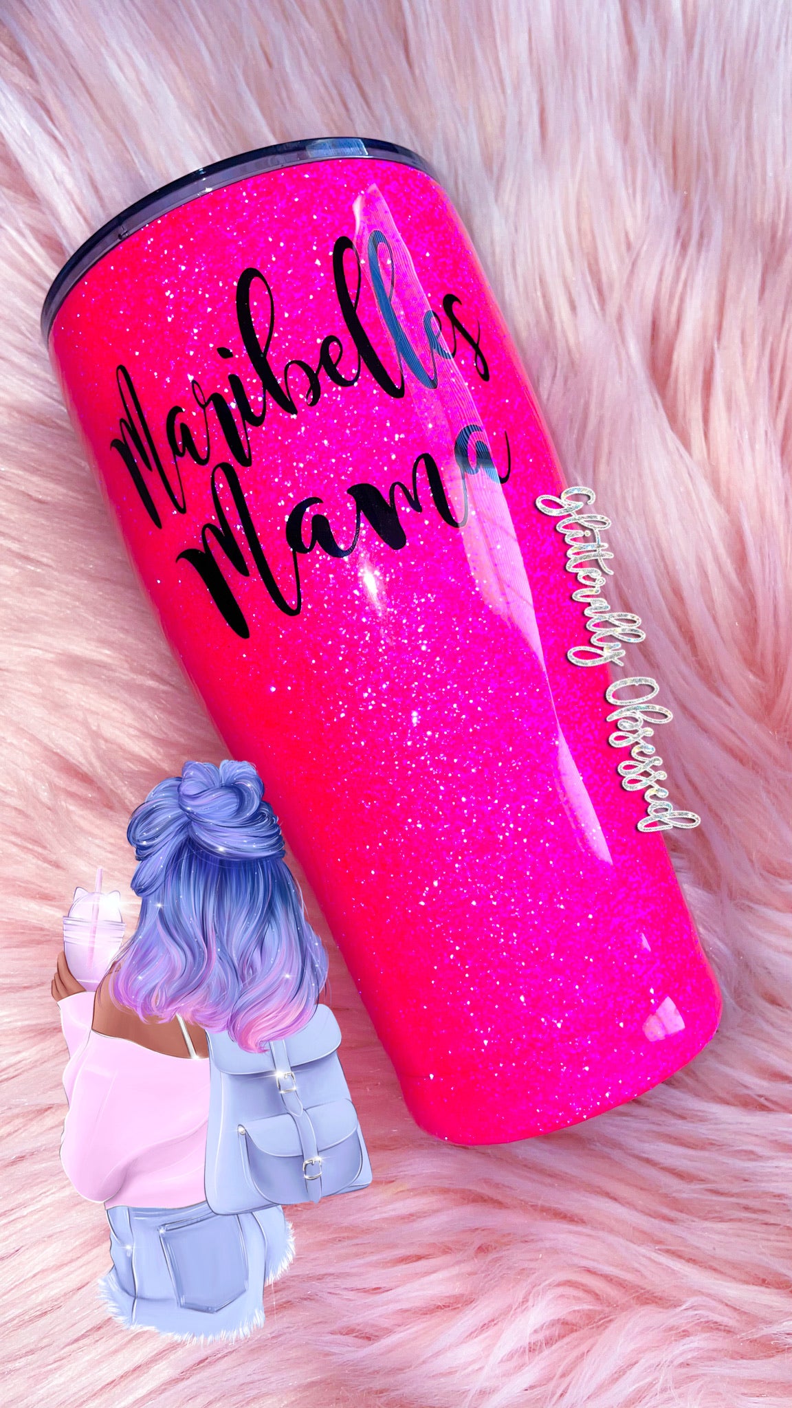 Please remember all tumblers are glittered by hand. Every cup will be unique in its own way and slightly different from the other. No two cups will ever be the same. As with all handmade items, there may be slight imperfections, but this in no way affects the use or quality of the tumbler. We offer multiple cup sizes so each design will look slightly different on each tumbler.