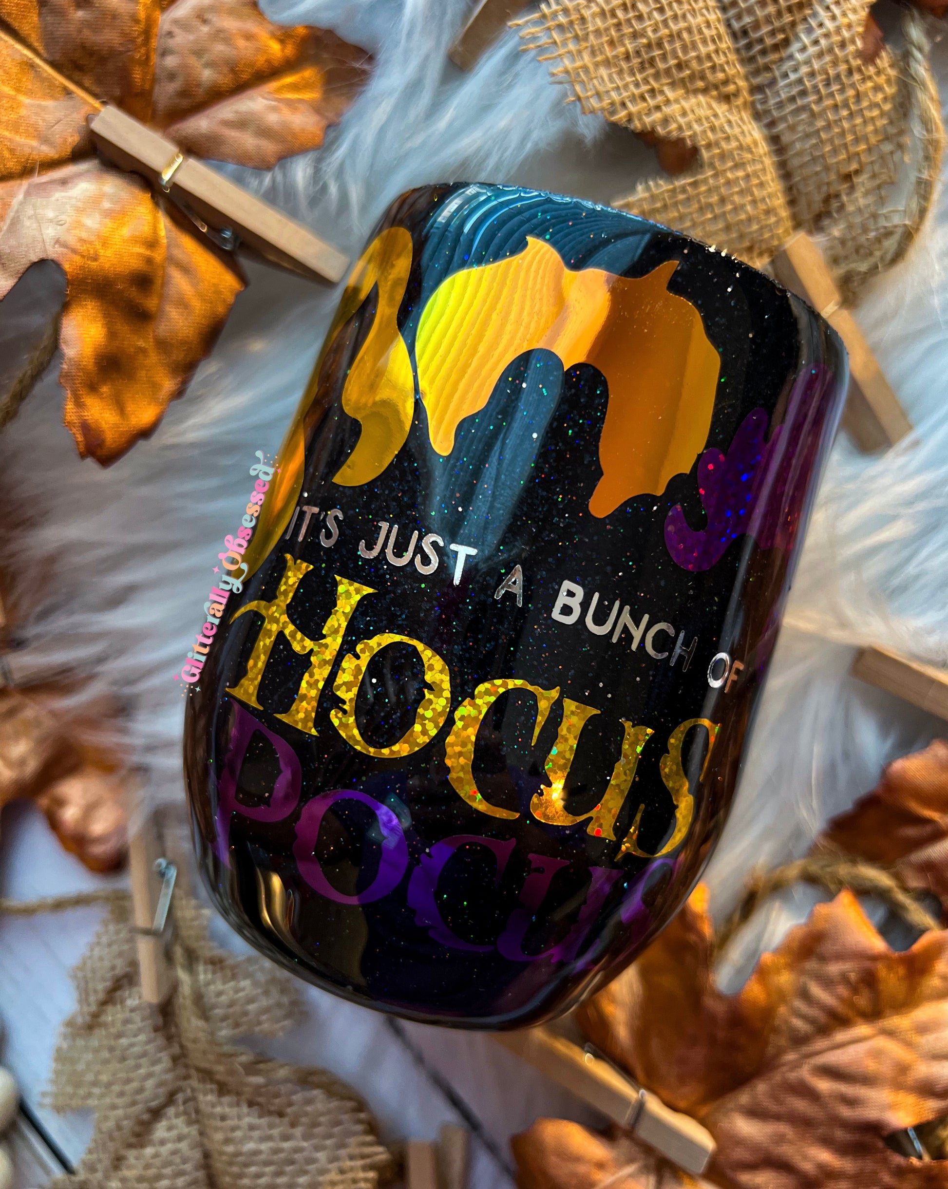 Please remember all tumblers are glittered by hand. Every cup will be unique in its own way and slightly different from the other. No two cups will ever be the same. As with all handmade items, there may be slight imperfections, but this in no way affects the use or quality of the tumbler. We offer multiple cup sizes so each design will look slightly different on each tumbler.