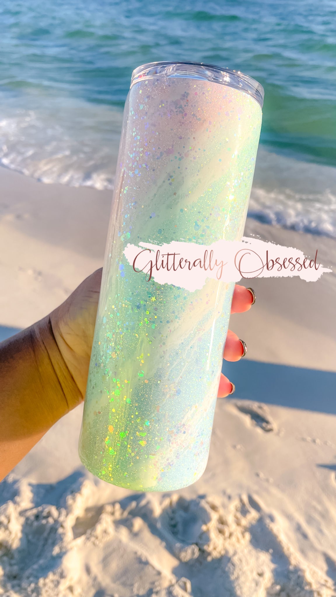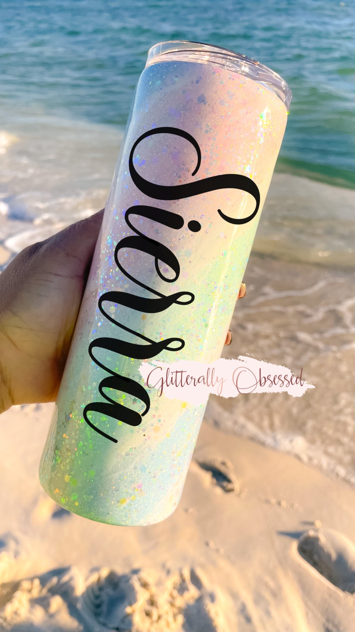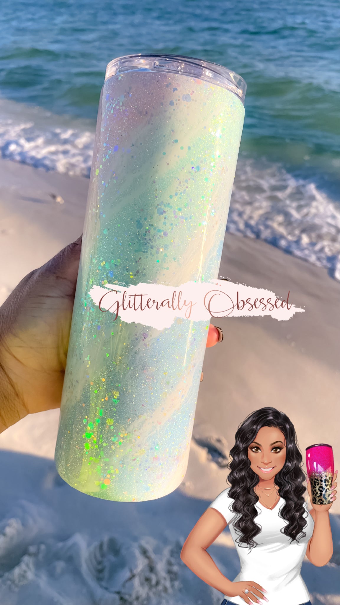Every Glitterally Obsessed tumbler is handmade with real glitter to give you the most sparkle! All of our tumblers are doubled walled stainless steel tumblers, these tumblers keep your drinks cold / hot much longer and do not sweat. Once completed every tumbler is coated in layers of FDA compliant food safe epoxy. This gives each tumbler a high gloss glass like brilliant smooth finish. Once the epoxy is fully cured the glitter will not come off or flake. Each tumbler comes branded with Glitterally Obsessed on the bottom of the cup to ensure you have a one of a kind custom cup made directly by us. Please remember that these cups will look similar to the listing picture, but sometimes glitter placement and the swirls lines may flow in the opposite direction. If you purchase a cup with decals they are placed underneath epoxy to ensure it stays. Before send off each tumbler is thoroughly inspected one last time & will have pictures and videos taken prior to confirm perfect condition before your item arrives. Every tumbler purchase comes with a tumbler lid, reusable straw, tumbler care instructions, and a complimentary gift.