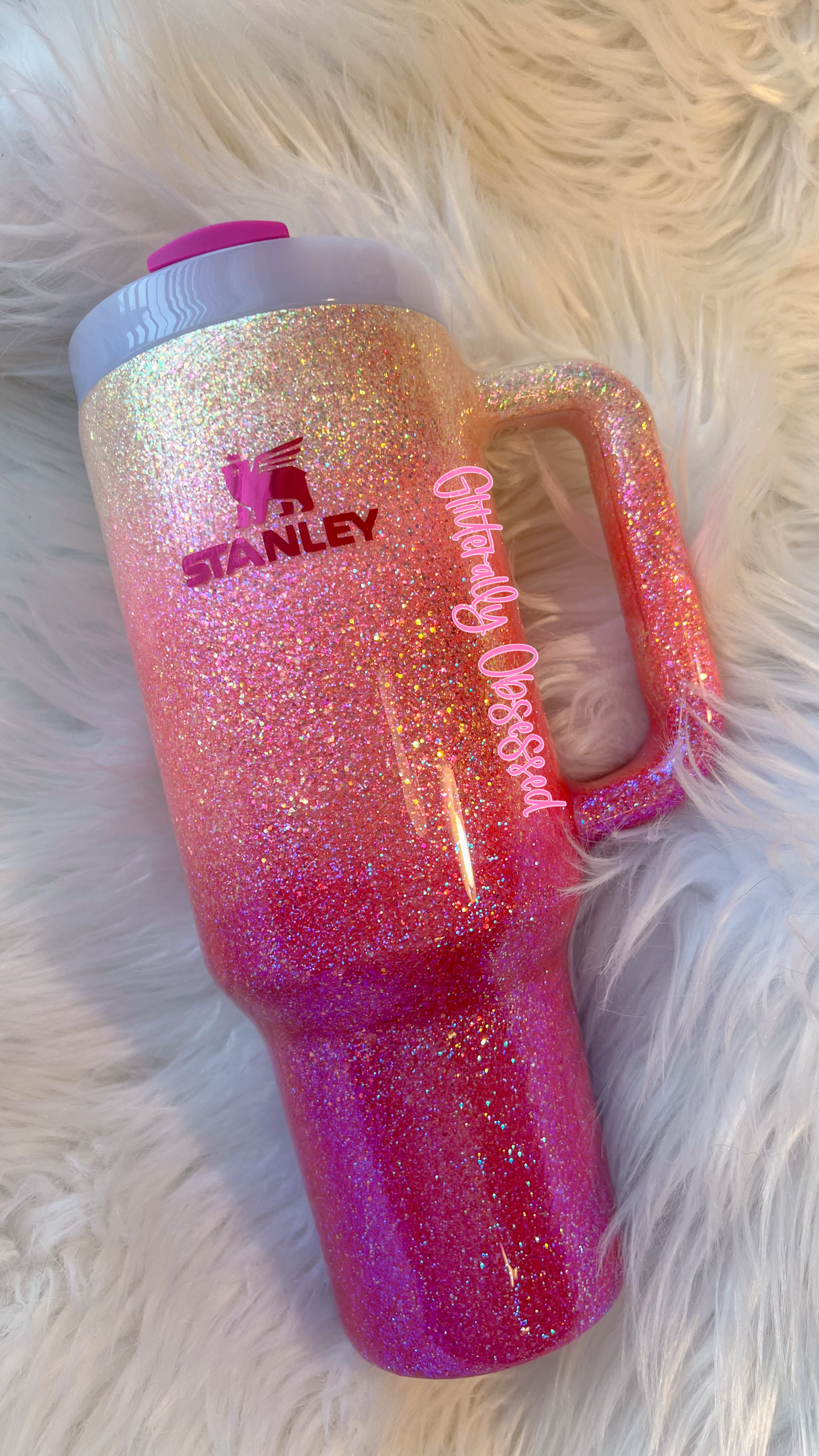 Every Glitterally Obsessed tumbler is handmade with real glitter to give you the most sparkle! All of our tumblers are doubled walled stainless steel tumblers, these tumblers keep your drinks cold / hot much longer and do not sweat. Once completed every tumbler is coated in layers of FDA compliant food safe epoxy. This gives each tumbler a high gloss glass like brilliant smooth finish. Once the epoxy is fully cured the glitter will not come off or flake. Each tumbler comes branded with Glitterally Obsessed on the bottom of the cup to ensure you have a one of a kind custom cup made directly by us. If you purchase a cup with decals they are placed underneath epoxy to ensure it stays. Before send off each tumbler is thoroughly inspected one last time & will have pictures and videos taken prior to confirm perfect condition before your item arrives. Every tumbler purchase comes with a tumbler lid, reusable straw, tumbler care instructions, and a complimentary gift.