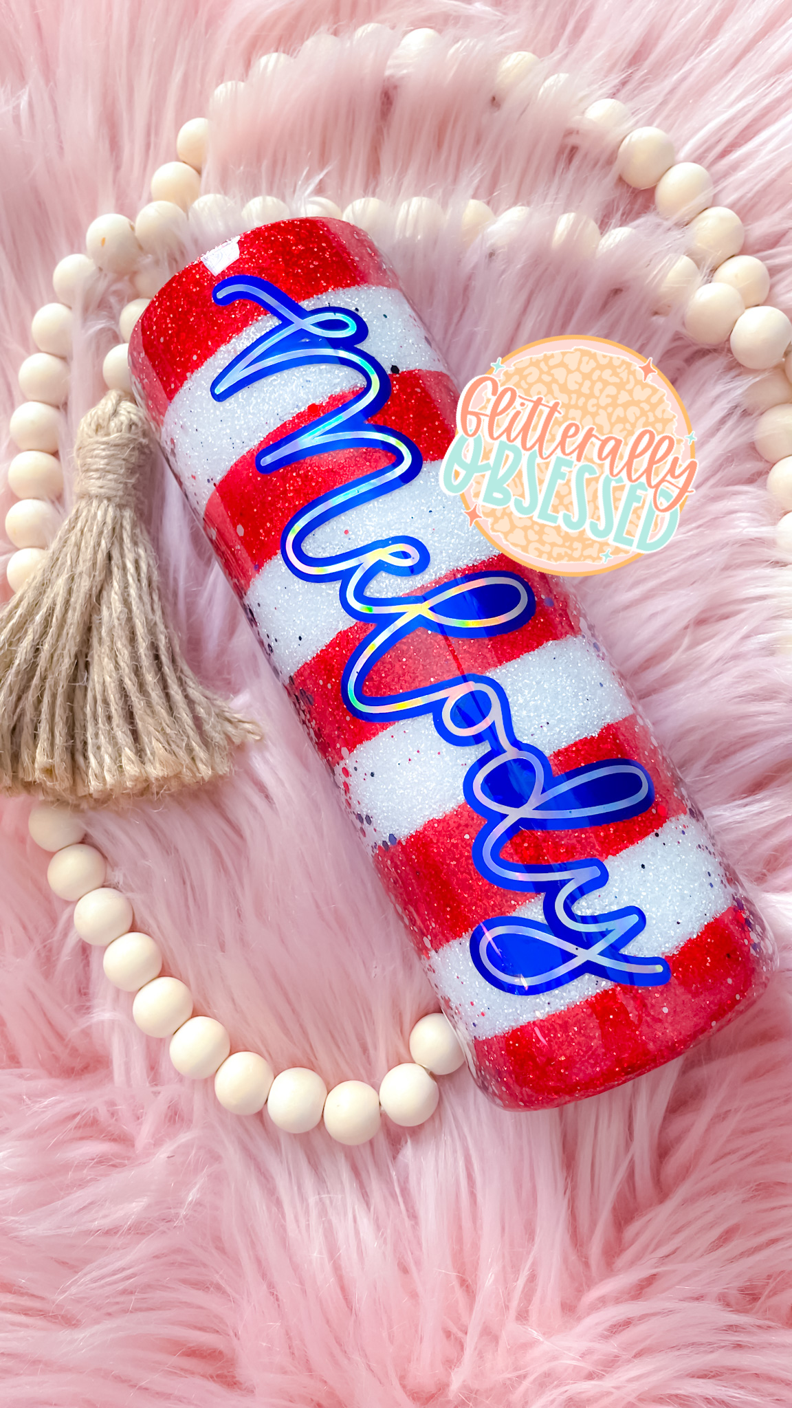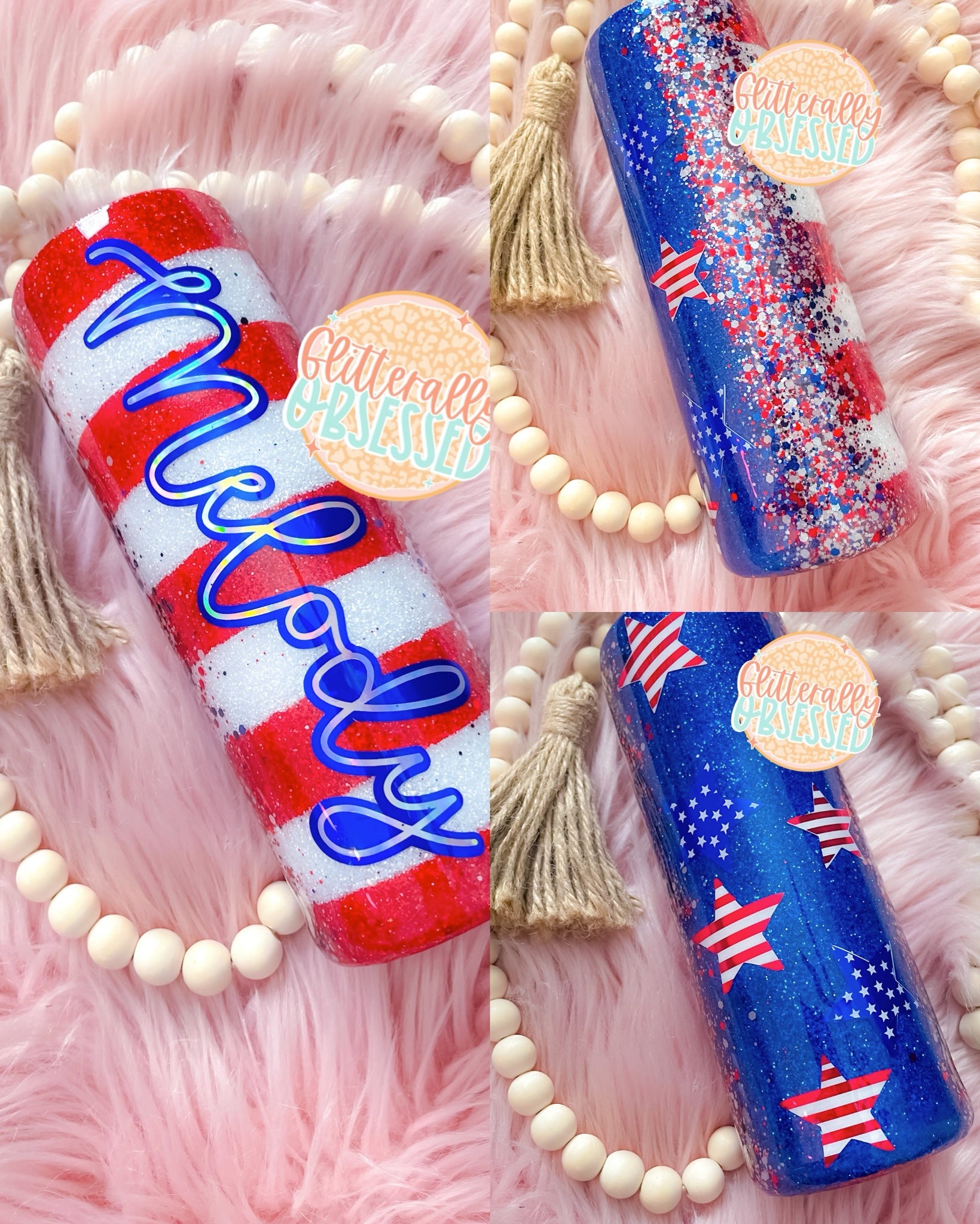 Every Glitterally Obsessed tumbler is handmade with real glitter to give you the most sparkle! All of our tumblers are doubled walled stainless steel tumblers, these tumblers keep your drinks cold / hot much longer and do not sweat. Once completed every tumbler is coated in layers of FDA compliant food safe epoxy. This gives each tumbler a high gloss glass like brilliant smooth finish. Once the epoxy is fully cured the glitter will not come off or flake. Each tumbler comes branded with Glitterally Obsessed on the bottom of the cup to ensure you have a one of a kind custom cup made directly by us. If you purchase a cup with decals they are placed underneath epoxy to ensure it stays. Before send off each tumbler is thoroughly inspected one last time & will have pictures and videos taken prior to confirm perfect condition before your item arrives. Every tumbler purchase comes with a tumbler lid, reusable straw, tumbler care instructions, and a complimentary gift.