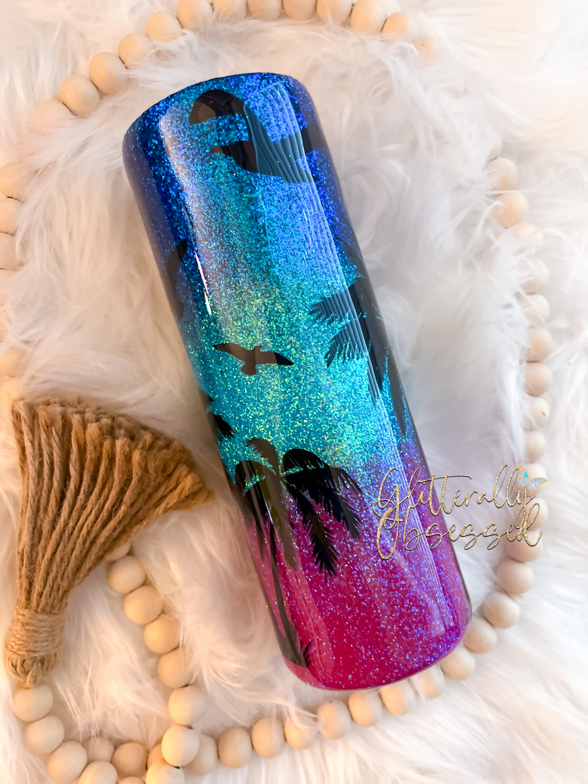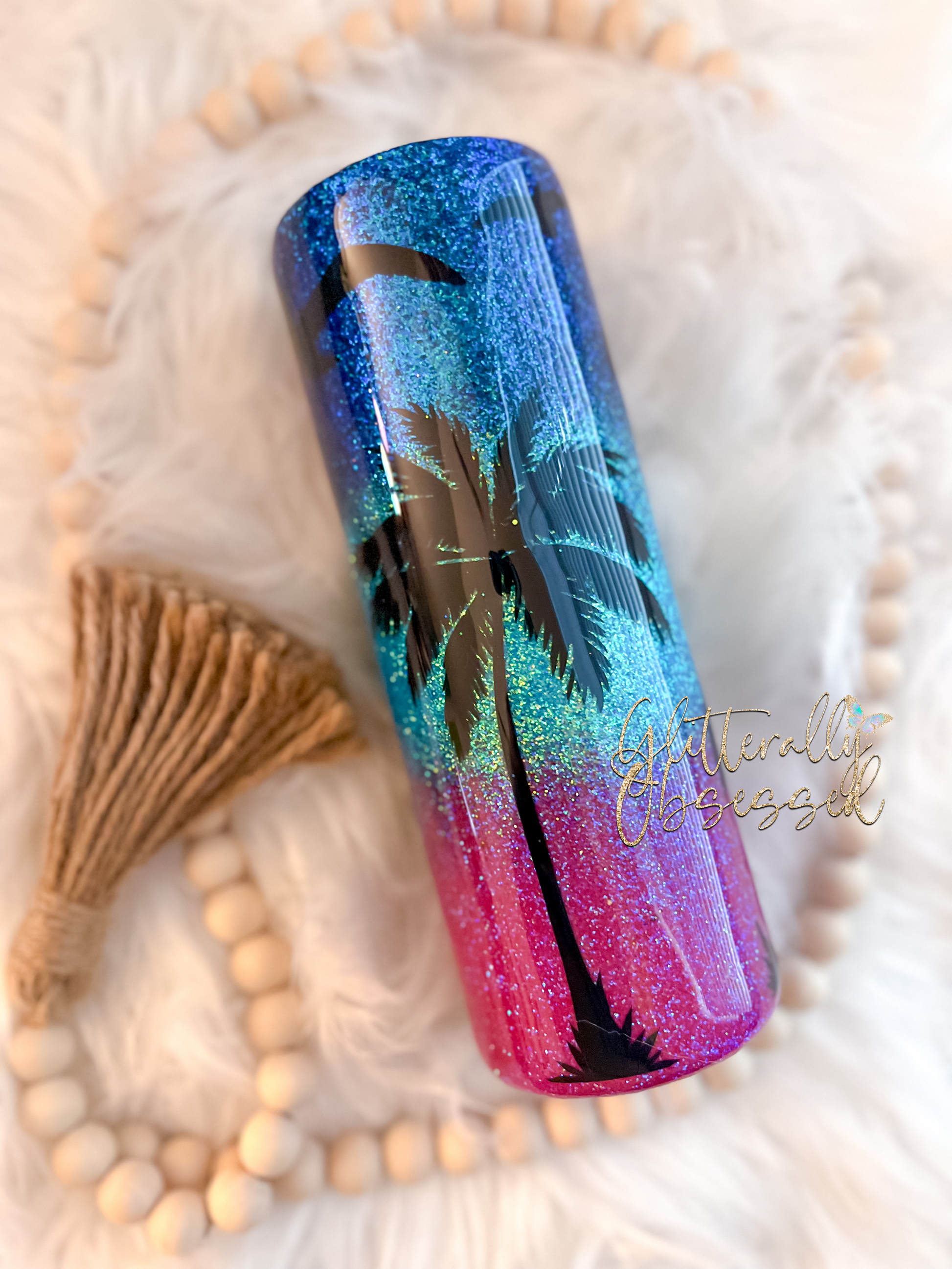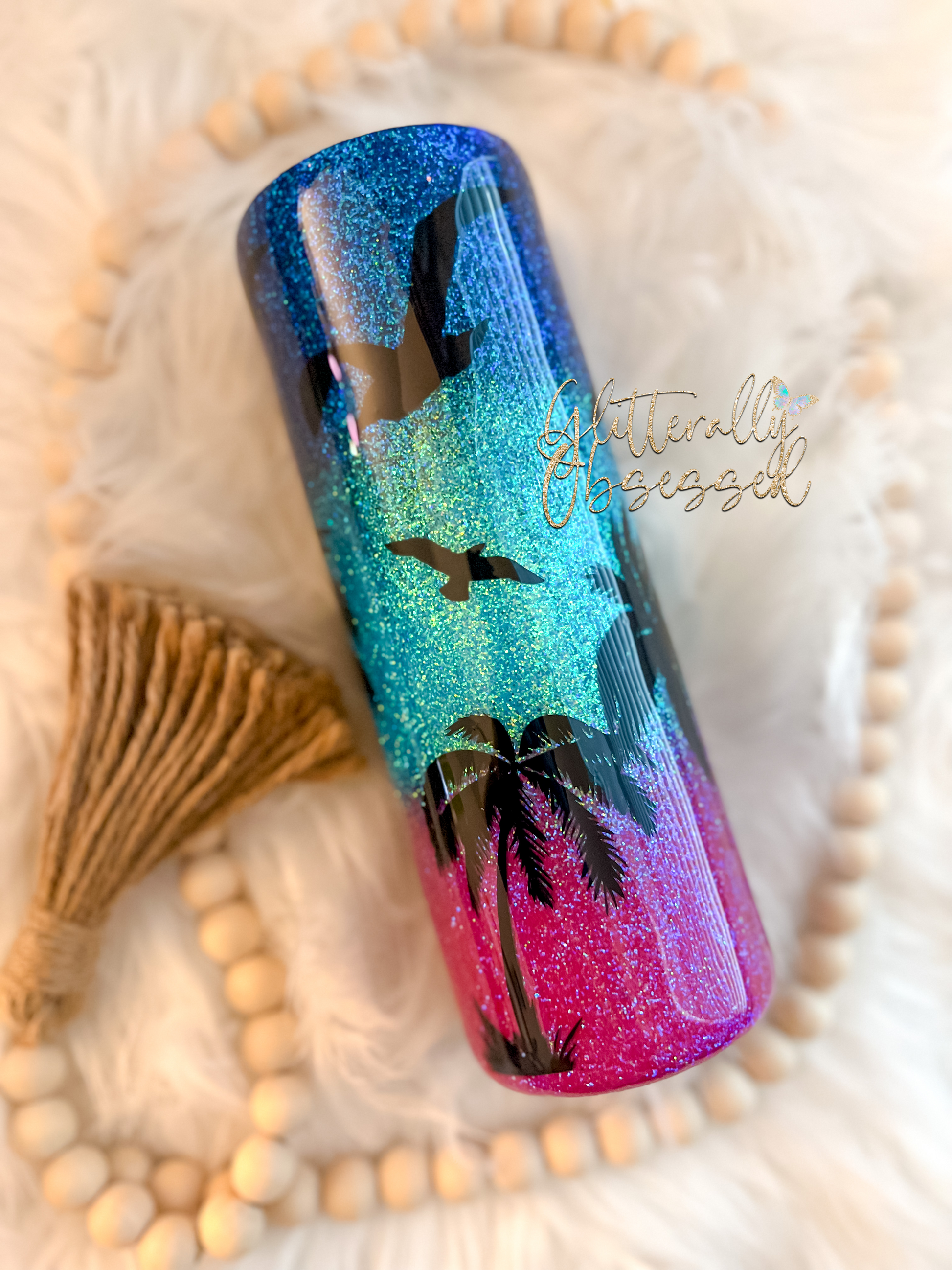 Please remember all tumblers are glittered by hand. Every cup will be unique in its own way and slightly different from the other. No two cups will ever be the same. As with all handmade items, there may be slight imperfections, but this in no way affects the use or quality of the tumbler. We offer multiple cup sizes so each design will look slightly different on each tumbler.