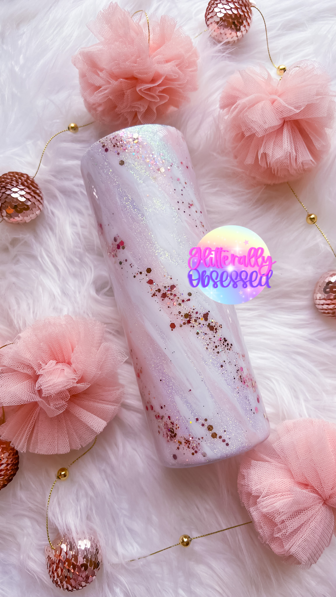 Please remember all tumblers are glittered by hand. Every cup will be unique in its own way and slightly different from the other. No two cups will ever be the same. As with all handmade items, there may be slight imperfections, but this in no way affects the use or quality of the tumbler. We offer multiple cup sizes so each design will look slightly different on each tumbler.