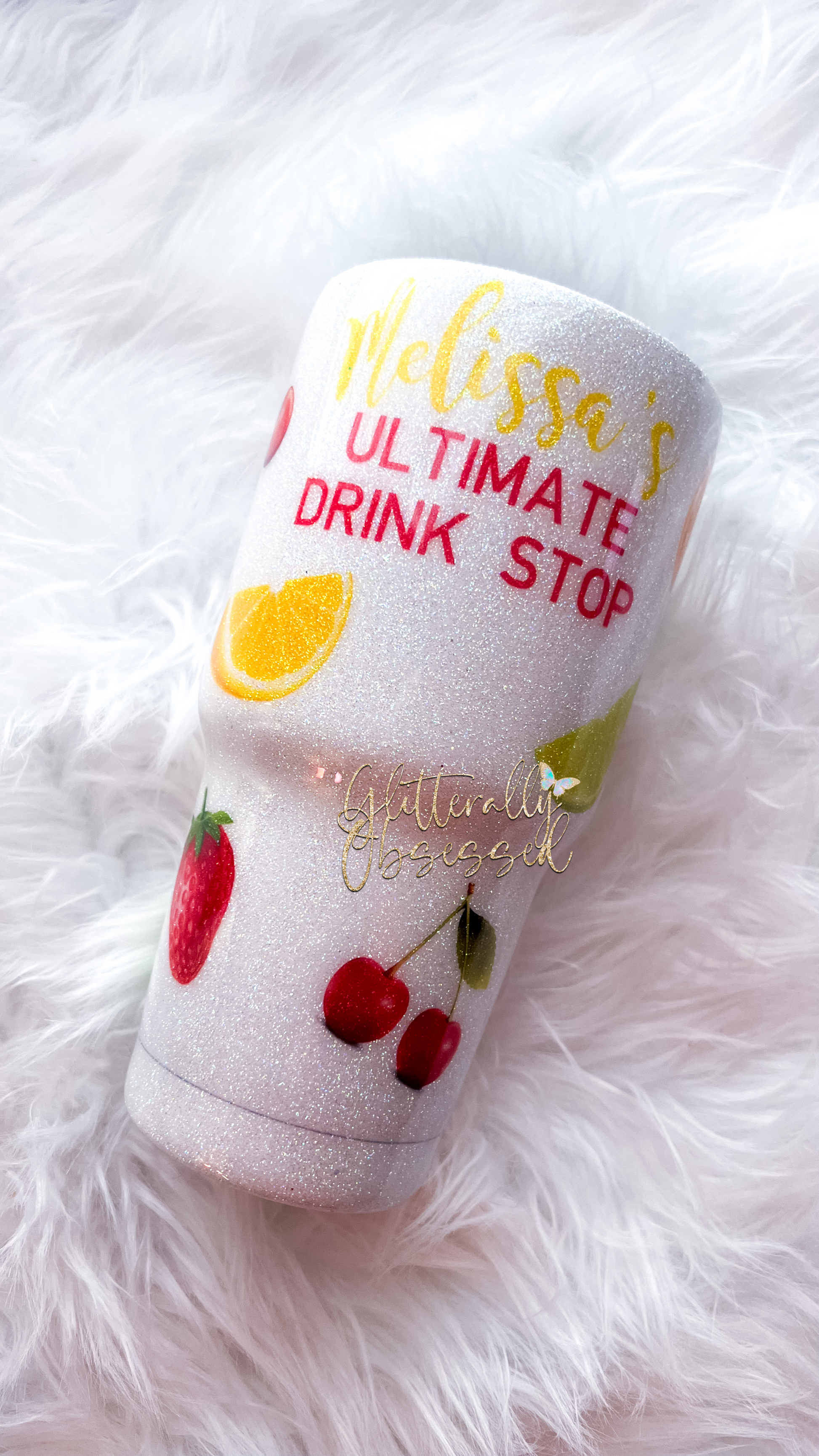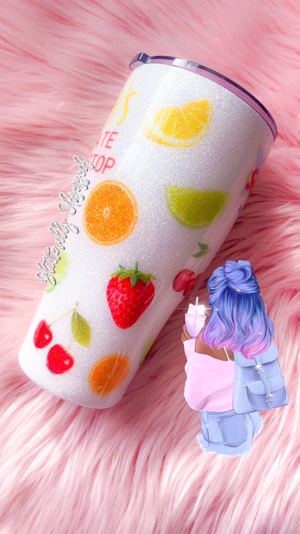 Please remember all tumblers are glittered by hand. Every cup will be unique in its own way and slightly different from the other. No two cups will ever be the same. As with all handmade items, there may be slight imperfections, but this in no way affects the use or quality of the tumbler. We offer multiple cup sizes so each design will look slightly different on each tumbler.