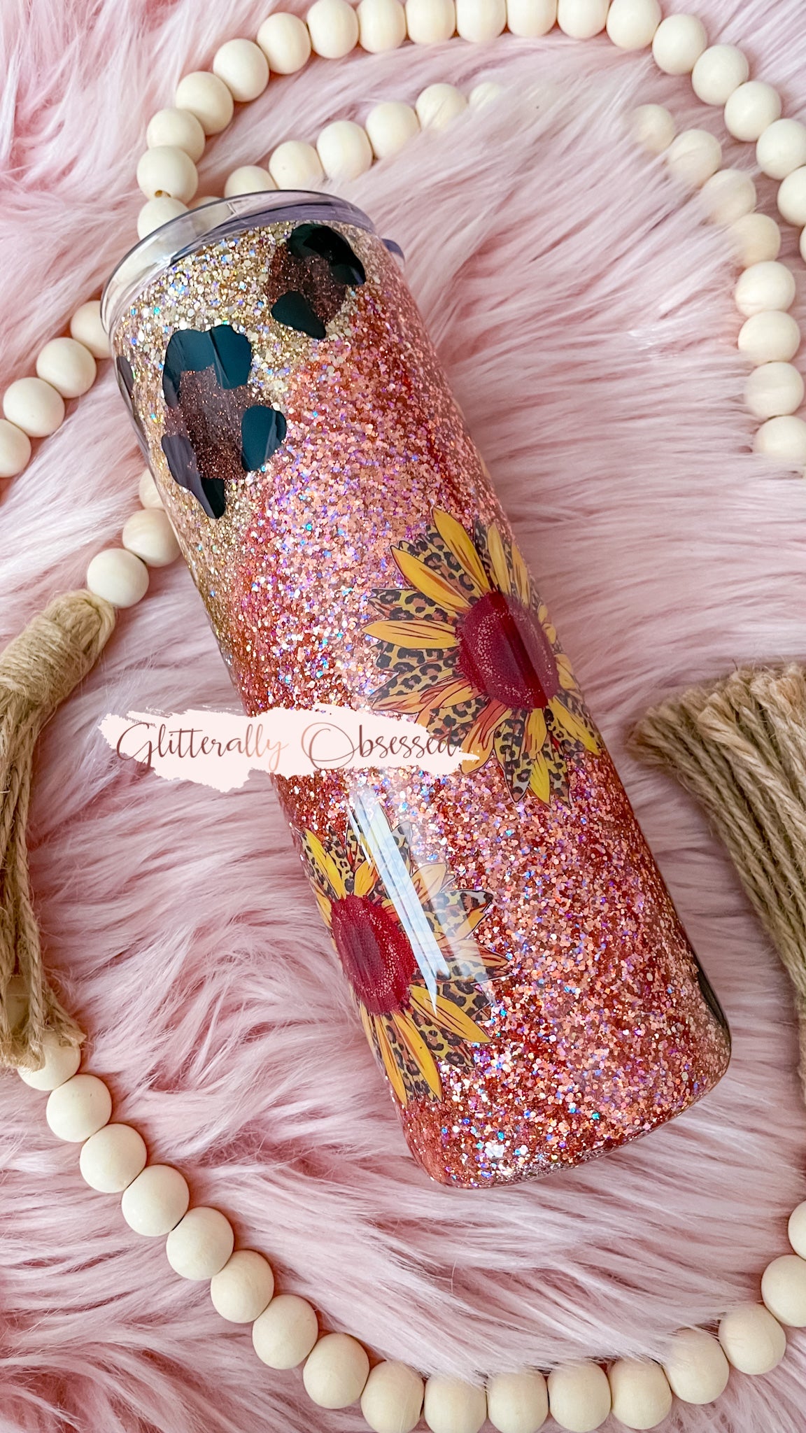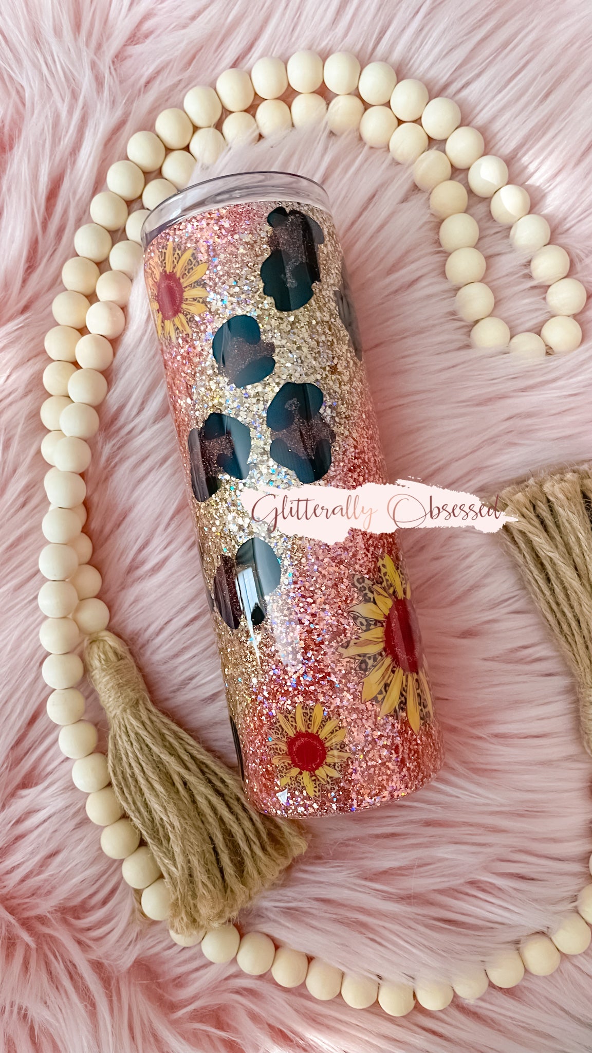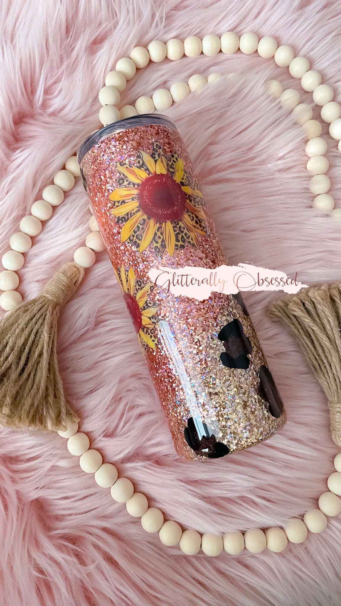 Please remember all tumblers are glittered by hand. Every cup will be unique in its own way and slightly different from the other. No two cups will ever be the same. As with all handmade items, there may be slight imperfections, but this in no way affects the use or quality of the tumbler. We offer multiple cup sizes so each design will look slightly different on each tumbler.