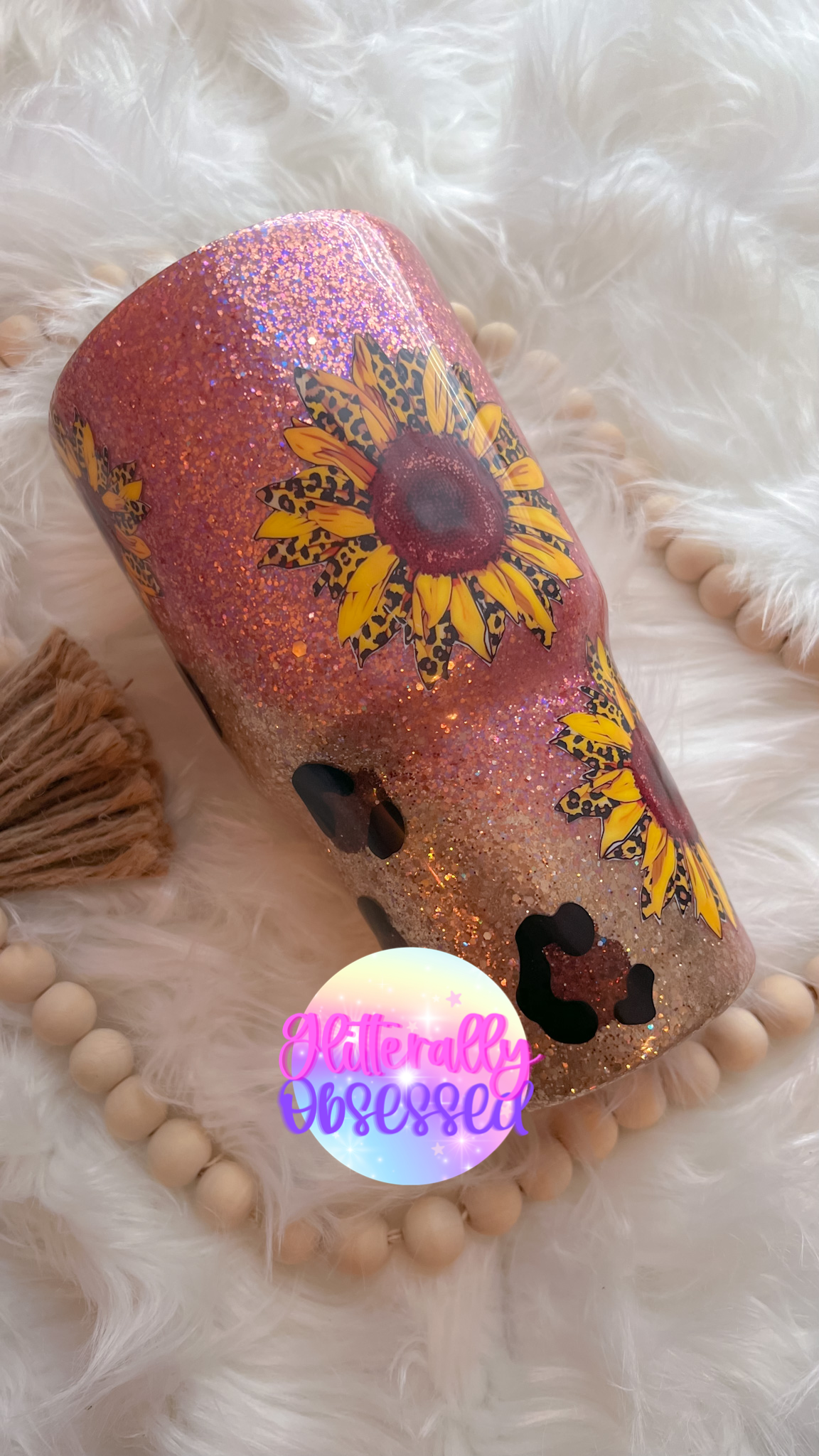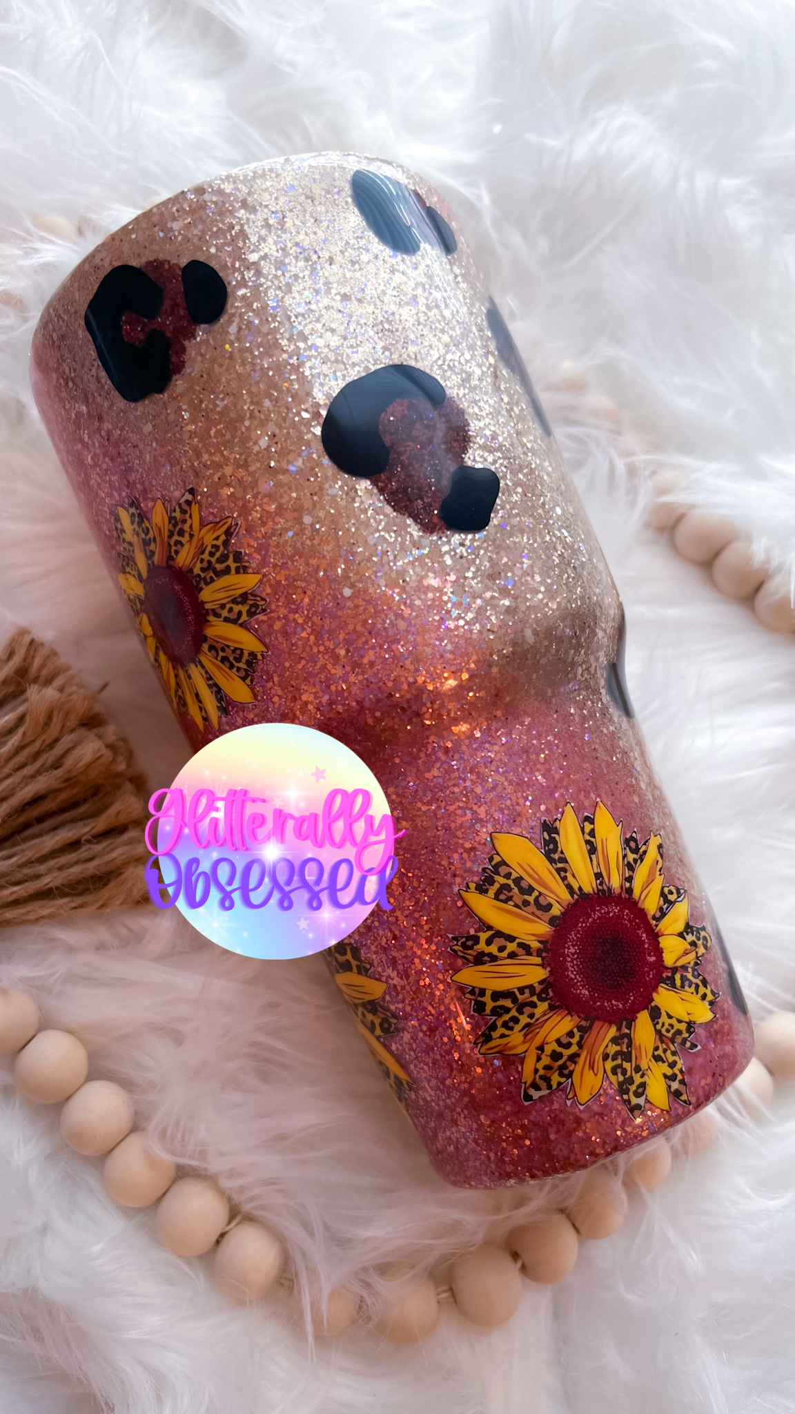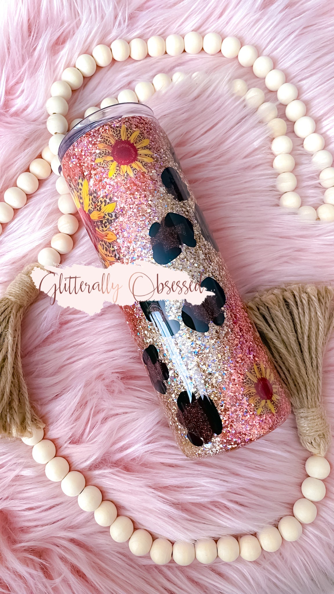 Please remember all tumblers are glittered by hand. Every cup will be unique in its own way and slightly different from the other. No two cups will ever be the same. As with all handmade items, there may be slight imperfections, but this in no way affects the use or quality of the tumbler. We offer multiple cup sizes so each design will look slightly different on each tumbler.