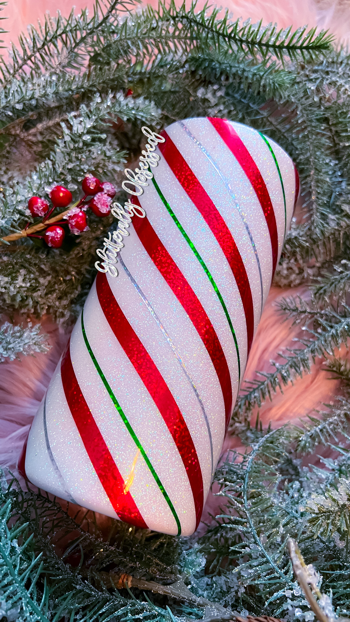 Please remember all tumblers are glittered by hand. Every cup will be unique in its own way and slightly different from the other. No two cups will ever be the same. As with all handmade items, there may be slight imperfections, but this in no way affects the use or quality of the tumbler. We offer multiple cup sizes so each design will look slightly different on each tumbler.