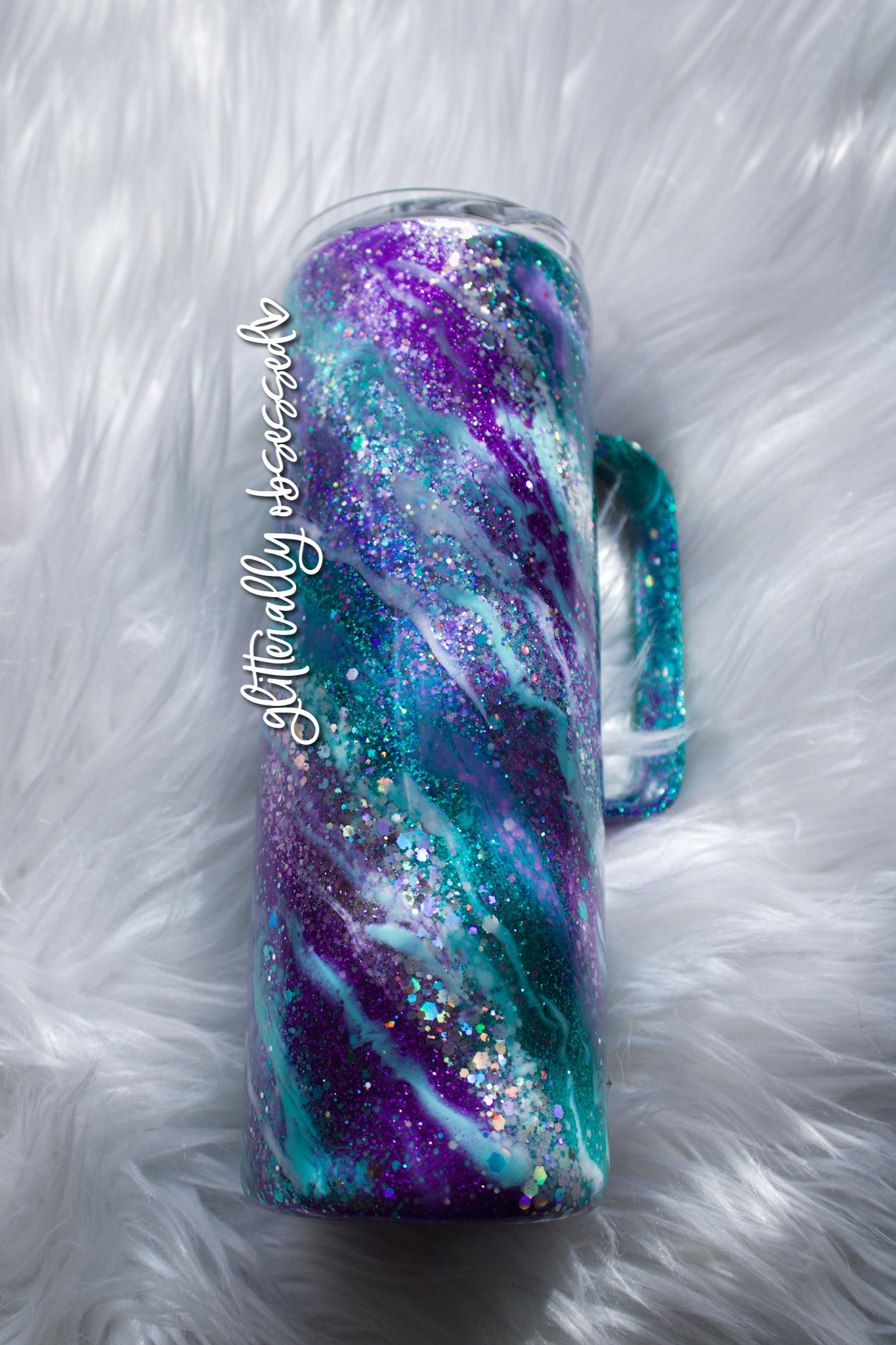 Every Glitterally Obsessed tumbler is handmade with real glitter to give you the most sparkle! All of our tumblers are doubled walled stainless steel tumblers, these tumblers keep your drinks cold / hot much longer and do not sweat. Once completed every tumbler is coated in layers of FDA compliant food safe epoxy. This gives each tumbler a high gloss glass like brilliant smooth finish. Once the epoxy is fully cured the glitter will not come off or flake. Each tumbler comes branded with Glitterally Obsessed on the bottom of the cup to ensure you have a one of a kind custom cup made directly by us. If you purchase a cup with decals they are placed underneath epoxy to ensure it stays. Milky way cups are unique and each one will look different. Please remember that these cups will look similar to the listing picture, but sometimes glitter placement and the swirls lines may flow in the opposite direction. Before send off each tumbler is thoroughly inspected one last time & will have pictures and videos taken prior to confirm perfect condition before your item arrives. Every tumbler purchase comes with a tumbler lid, reusable straw, tumbler care instructions, and a complimentary gift.