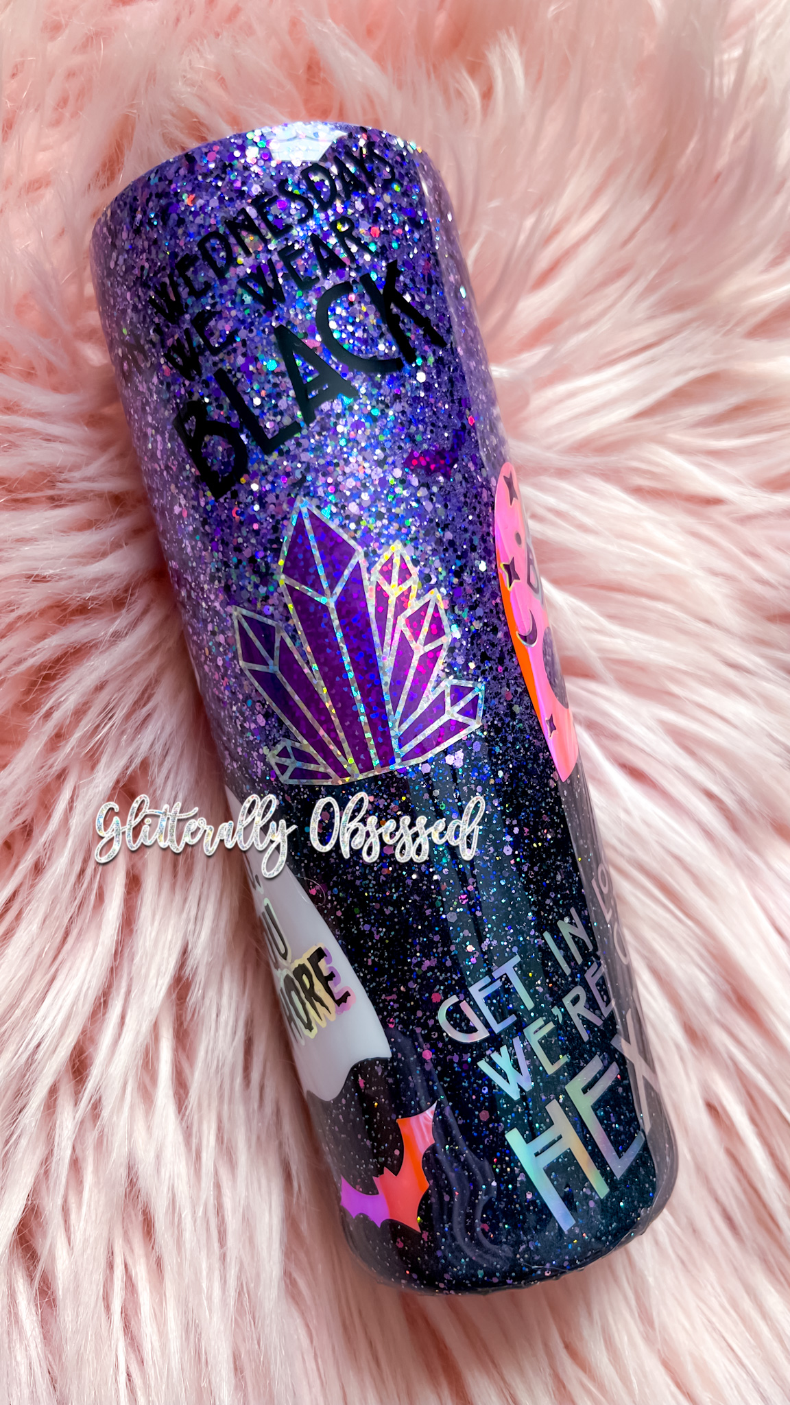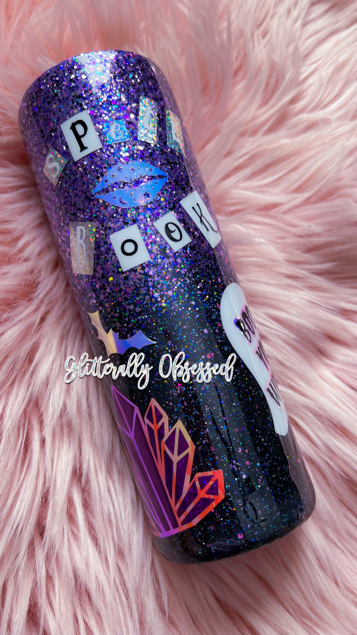 Please remember all tumblers are glittered by hand. Every cup will be unique in its own way and slightly different from the other. No two cups will ever be the same. As with all handmade items, there may be slight imperfections, but this in no way affects the use or quality of the tumbler. We offer multiple cup sizes so each design will look slightly different on each tumbler.