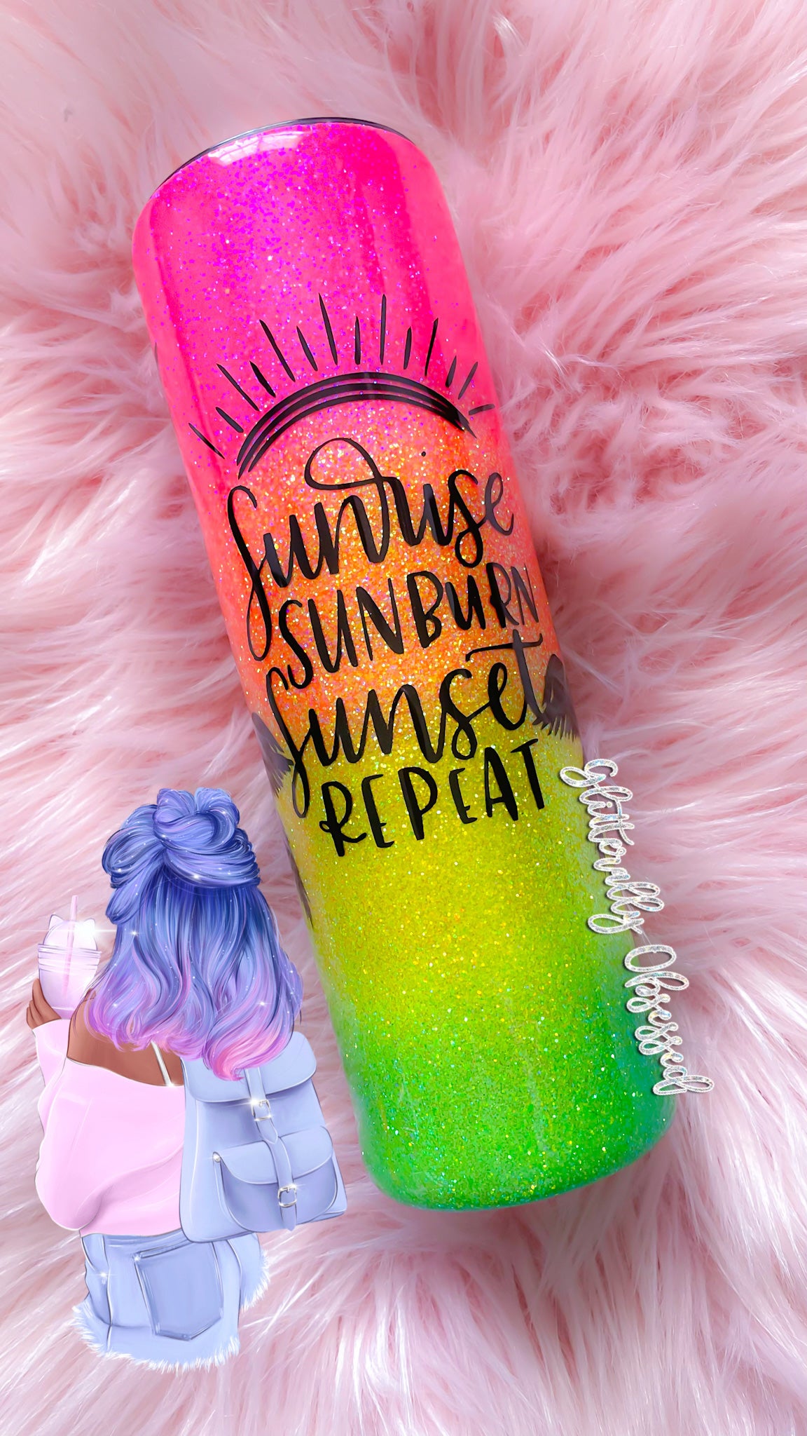 Please remember all tumblers are glittered by hand. Every cup will be unique in its own way and slightly different from the other. No two cups will ever be the same. As with all handmade items, there may be slight imperfections, but this in no way affects the use or quality of the tumbler. We offer multiple cup sizes so each design will look slightly different on each tumbler.