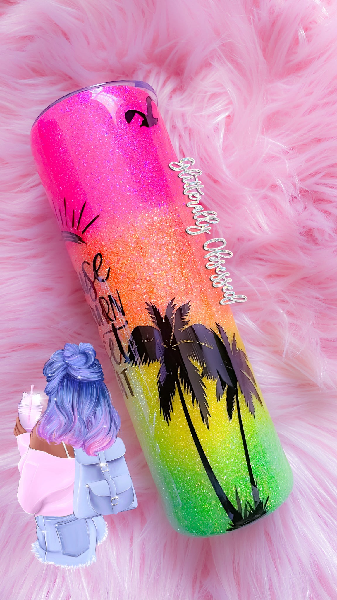 Every Glitterally Obsessed tumbler is handmade with real glitter to give you the most sparkle! All of our tumblers are doubled walled stainless steel tumblers, these tumblers keep your drinks cold / hot much longer and do not sweat. Once completed every tumbler is coated in layers of FDA compliant food safe epoxy. This gives each tumbler a high gloss glass like brilliant smooth finish. Once the epoxy is fully cured the glitter will not come off or flake. Each tumbler comes branded with Glitterally Obsessed on the bottom of the cup to ensure you have a one of a kind custom cup made directly by us. If you purchase a cup with decals they are placed underneath epoxy to ensure it stays. Before send off each tumbler is thoroughly inspected one last time & will have pictures and videos taken prior to confirm perfect condition before your item arrives. Every tumbler purchase comes with a tumbler lid, reusable straw, tumbler care instructions, and a complimentary gift.