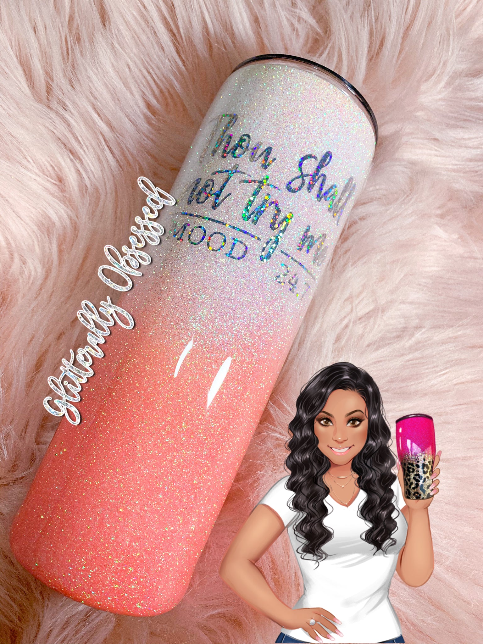 Please remember all tumblers are glittered by hand. Every cup will be unique in its own way and slightly different from the other. No two cups will ever be the same. As with all handmade items, there may be slight imperfections, but this in no way affects the use or quality of the tumbler. We offer multiple cup sizes so each design will look slightly different on each tumbler.