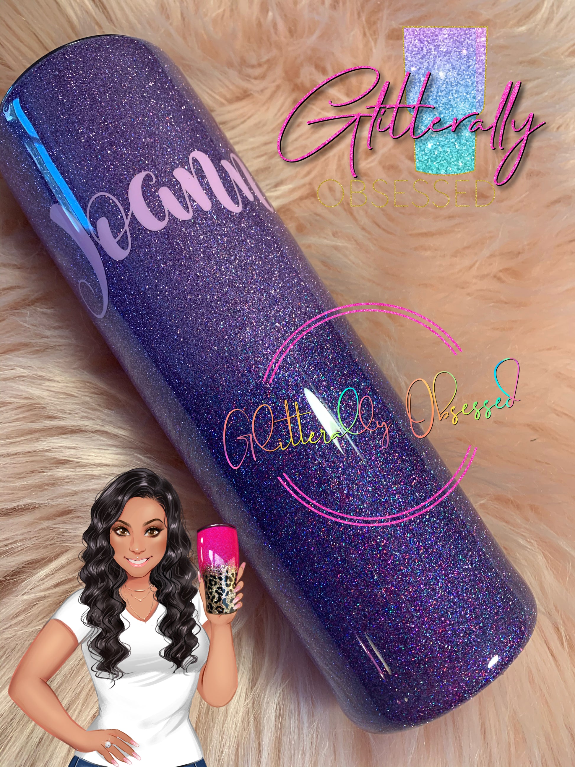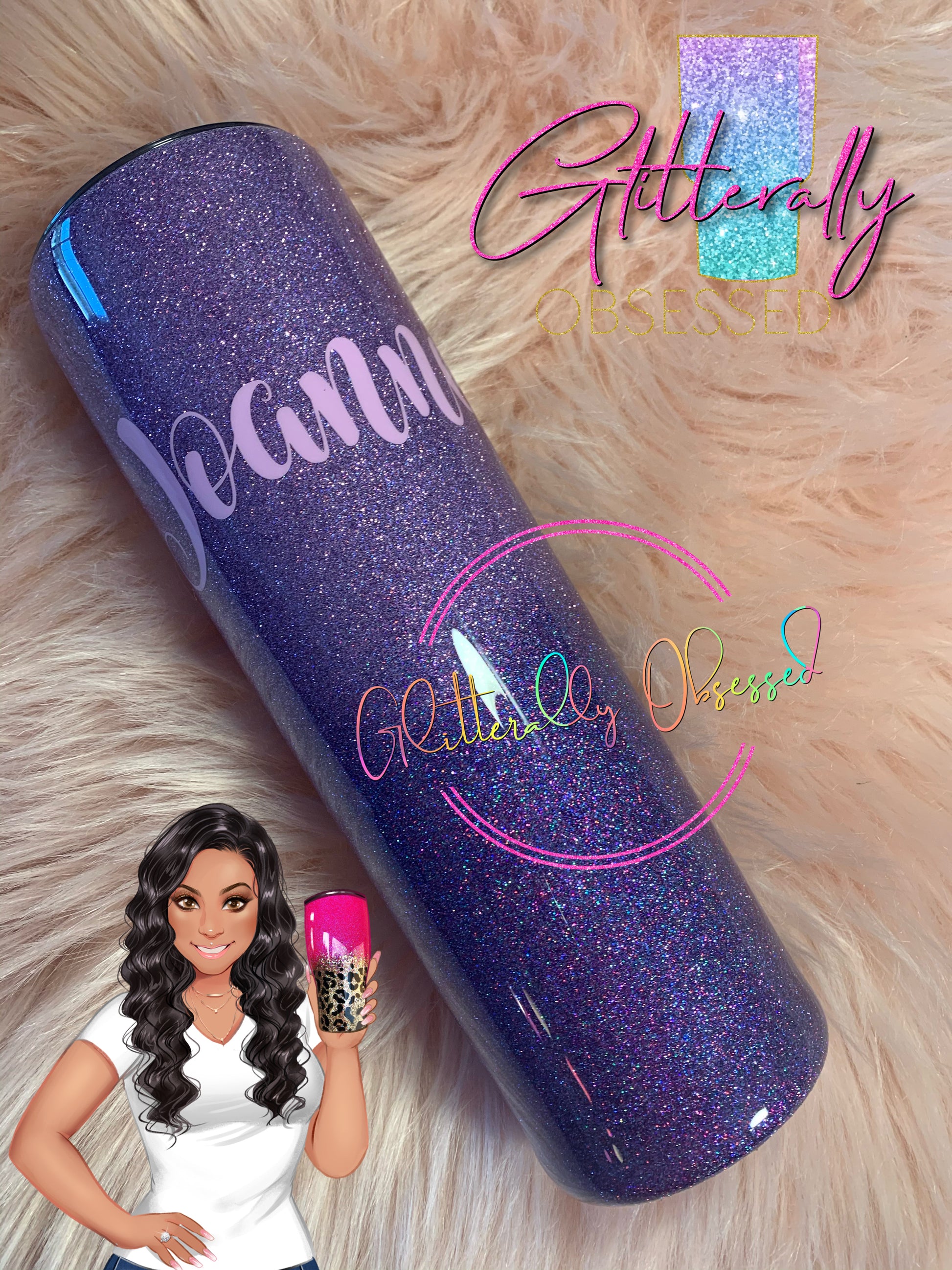 Every Glitterally Obsessed tumbler is handmade with real glitter to give you the most sparkle! All of our tumblers are doubled walled stainless steel tumblers, these tumblers keep your drinks cold / hot much longer and do not sweat. Once completed every tumbler is coated in layers of FDA compliant food safe epoxy. This gives each tumbler a high gloss glass like brilliant smooth finish. Once the epoxy is fully cured the glitter will not come off or flake. Each tumbler comes branded with Glitterally Obsessed on the bottom of the cup to ensure you have a one of a kind custom cup made directly by us. If you purchase a cup with decals they are placed underneath epoxy to ensure it stays. Before send off each tumbler is thoroughly inspected one last time & will have pictures and videos taken prior to confirm perfect condition before your item arrives. Every tumbler purchase comes with a tumbler lid, reusable straw, tumbler care instructions, and a complimentary gift.